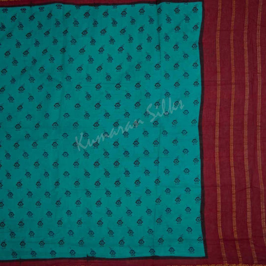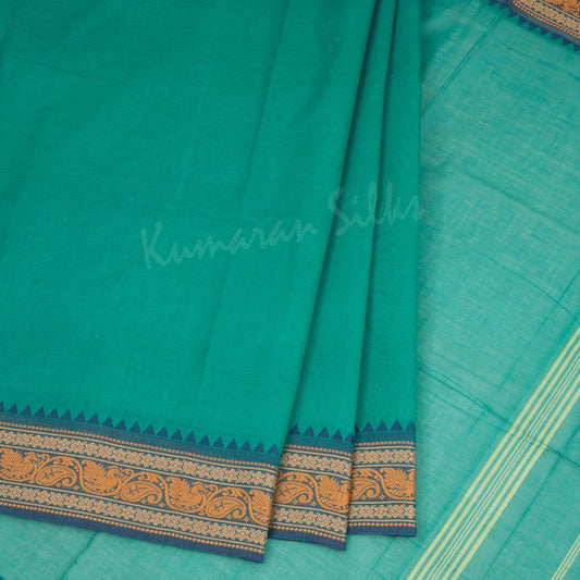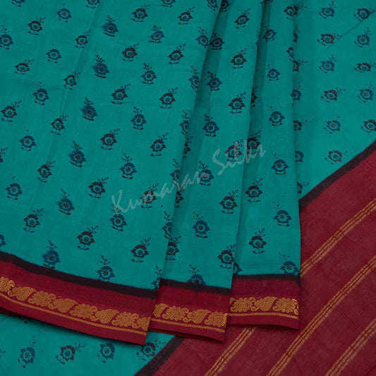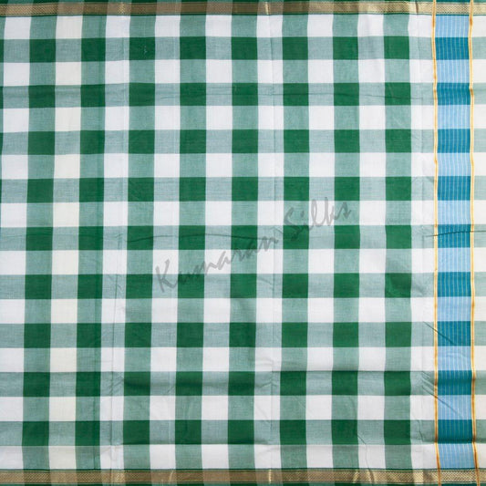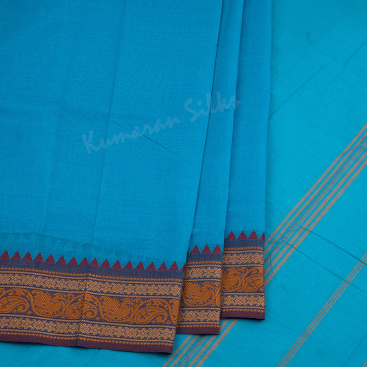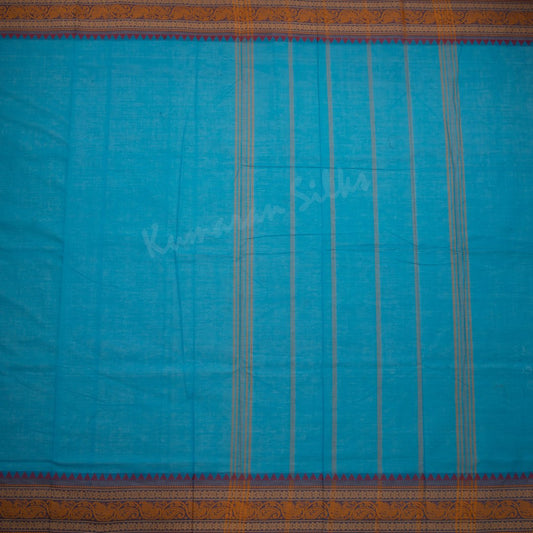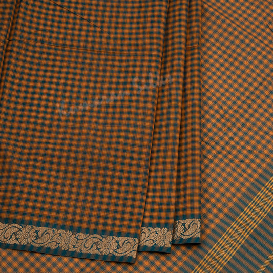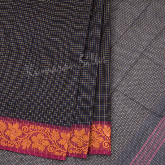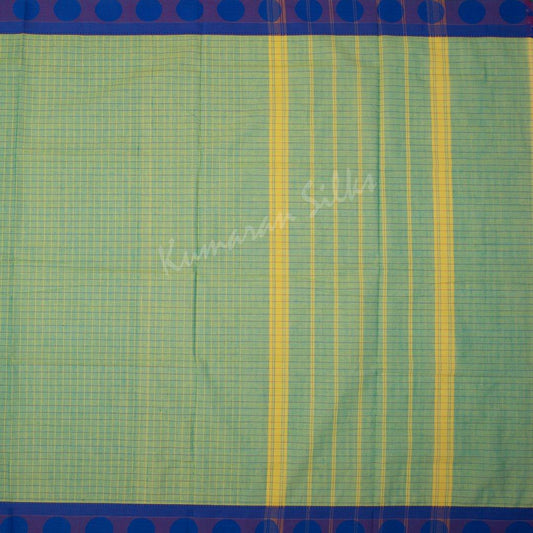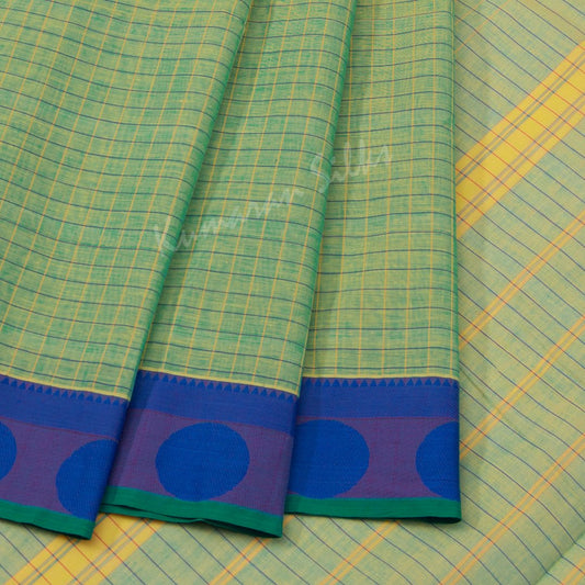 9 Yards Blue Chettinad Cotton Micro Checked Saree And Simple Thread Border Without Blouse 03