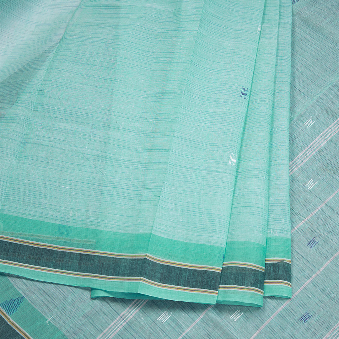 Bengali Cotton Mint Green Thread Embossed Saree, Cotton sarees have their own charm, and there are multiple reasons to add this ethnic wear to your wardrobe, especially during summers