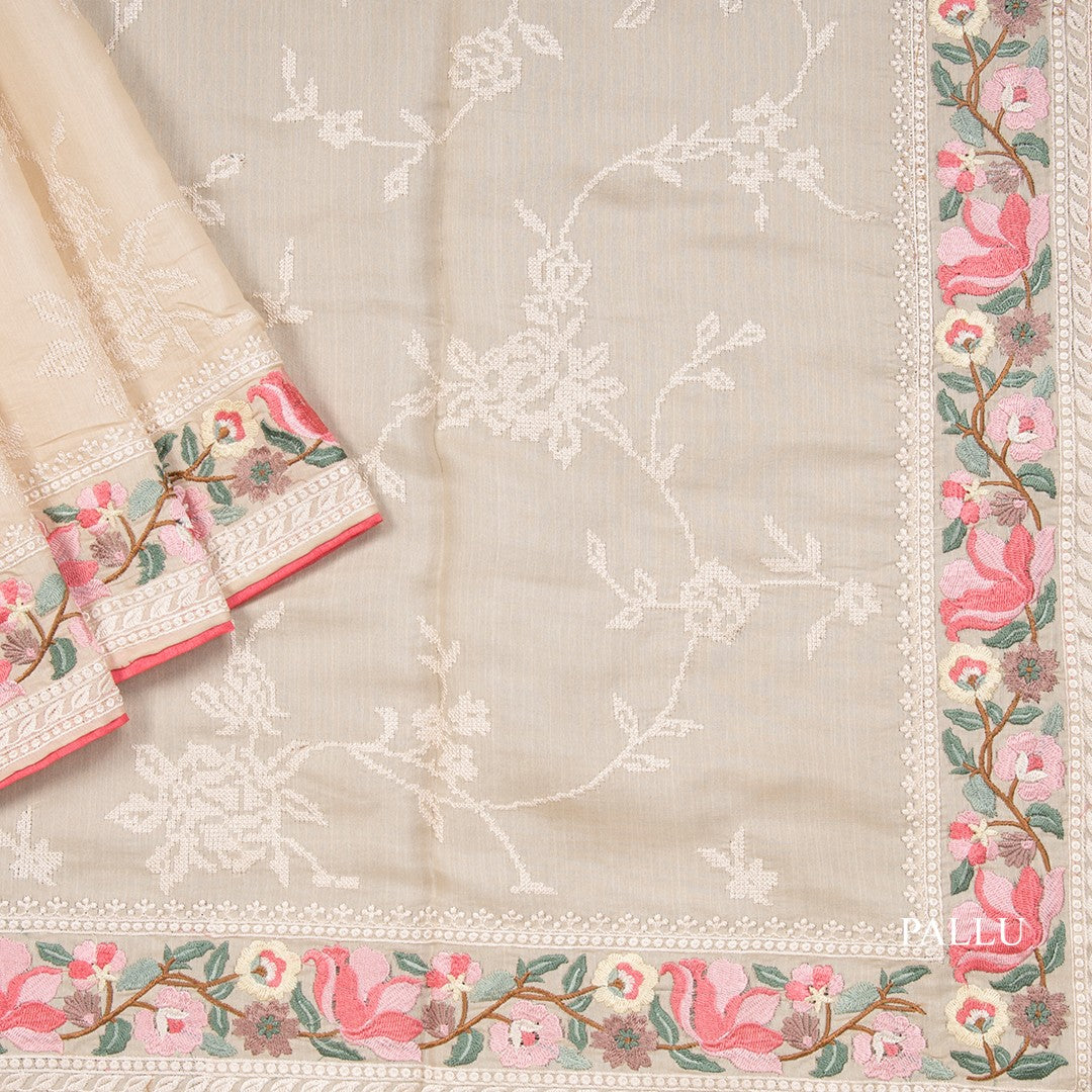 Cream Semi Raw Silk Thread Embroidered Saree 03