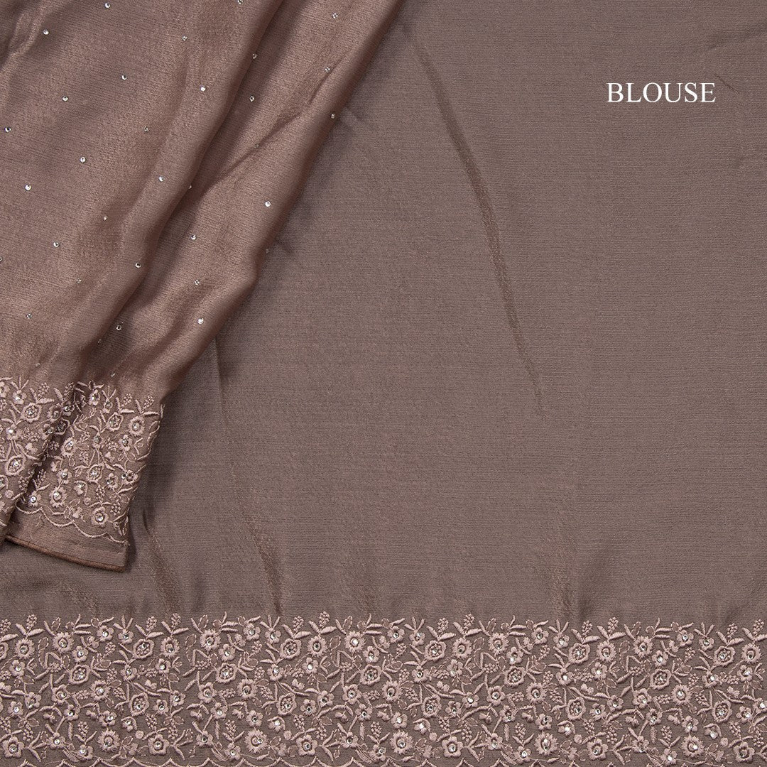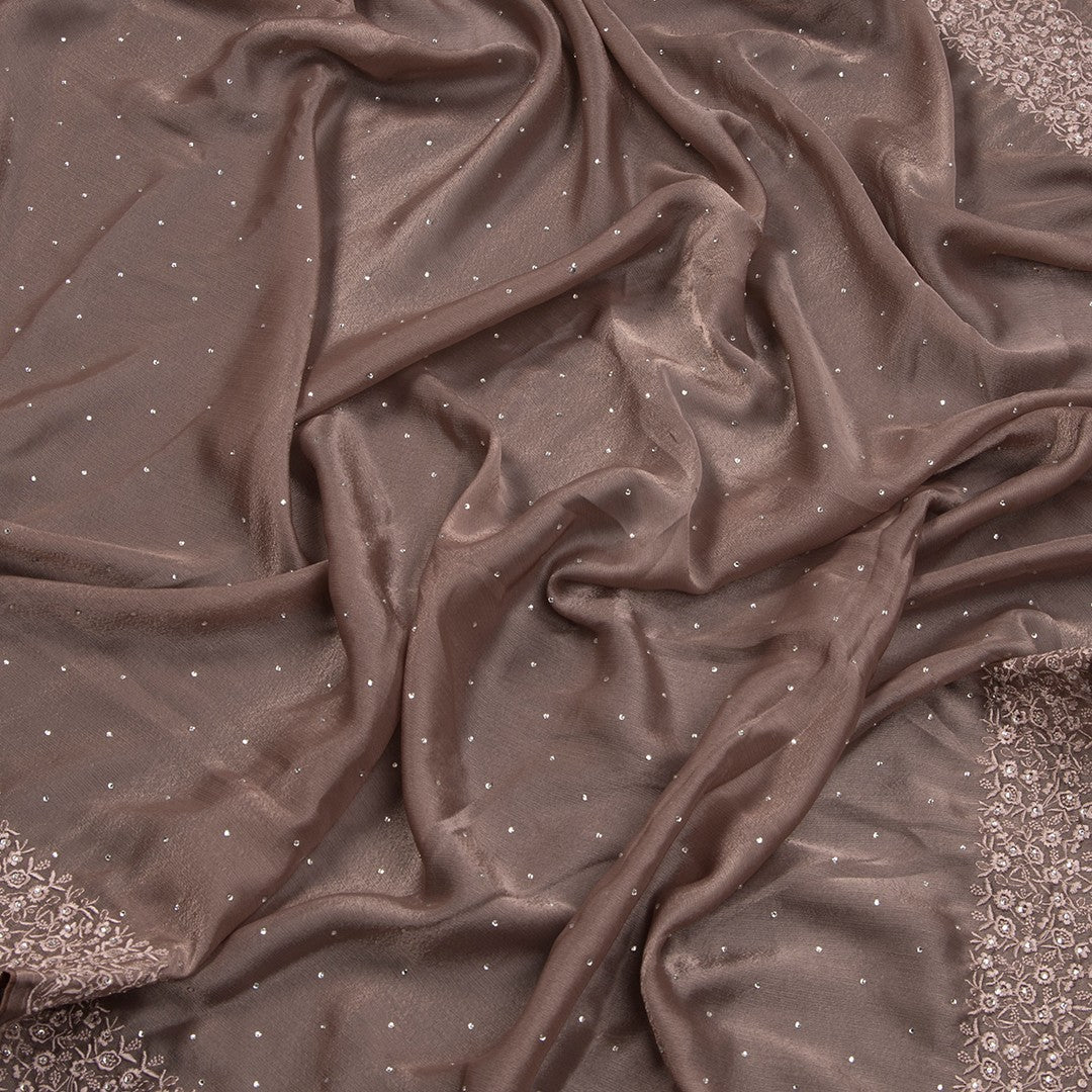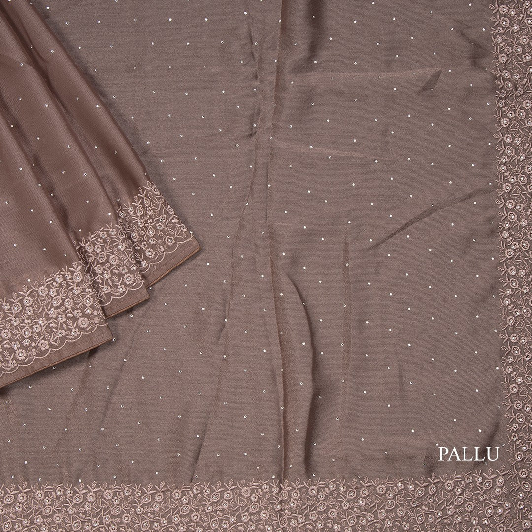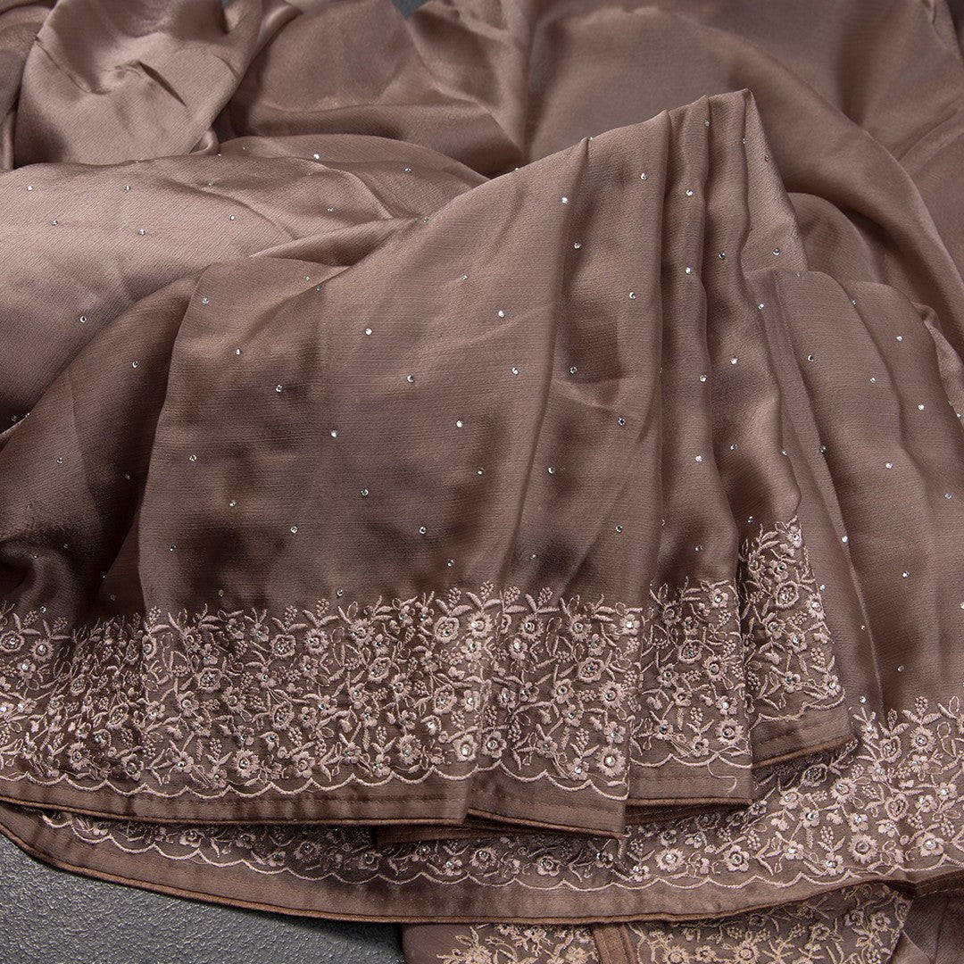 Organza Dark Brown Thread Embroidered With Stone Work Saree