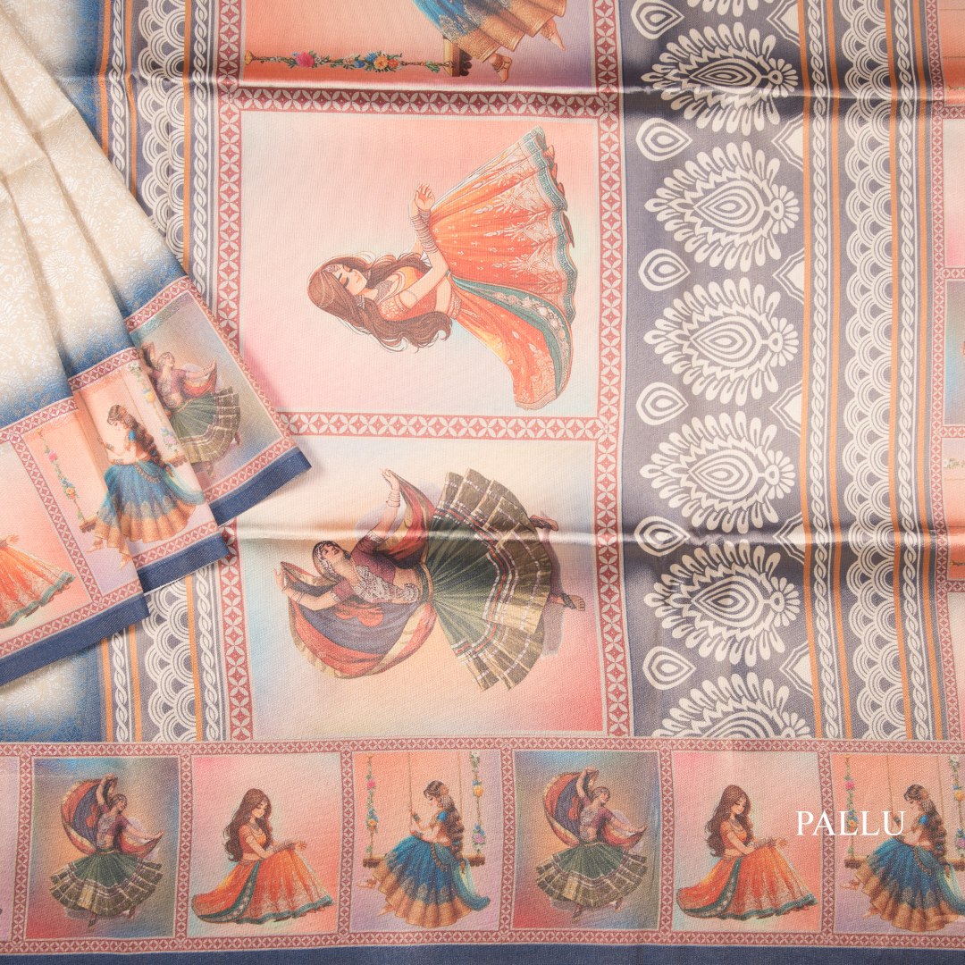 Semi Raw Silk Cream Embossed With Printed On Border,Handpicked stylish sarees in amazing fabrics with pleasing designs to bring the oomph factor in you.