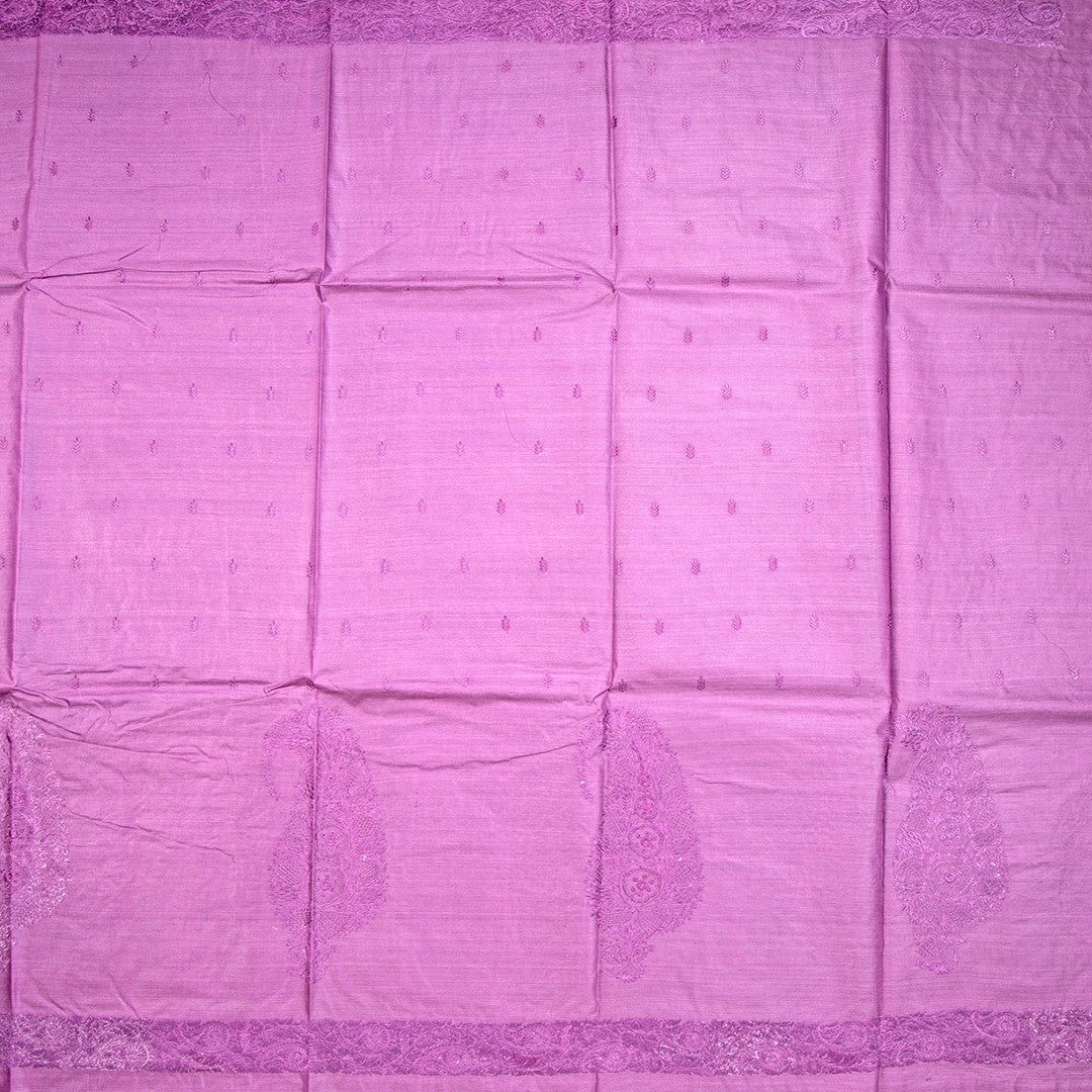 Semi Tussar Dark Magenta Thread Work Saree 02