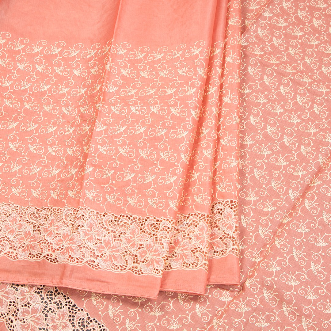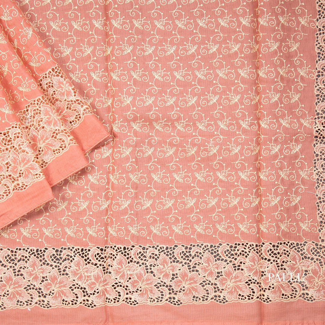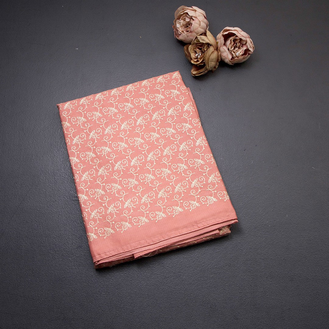 Semi Tussar Peach Thread Work Saree