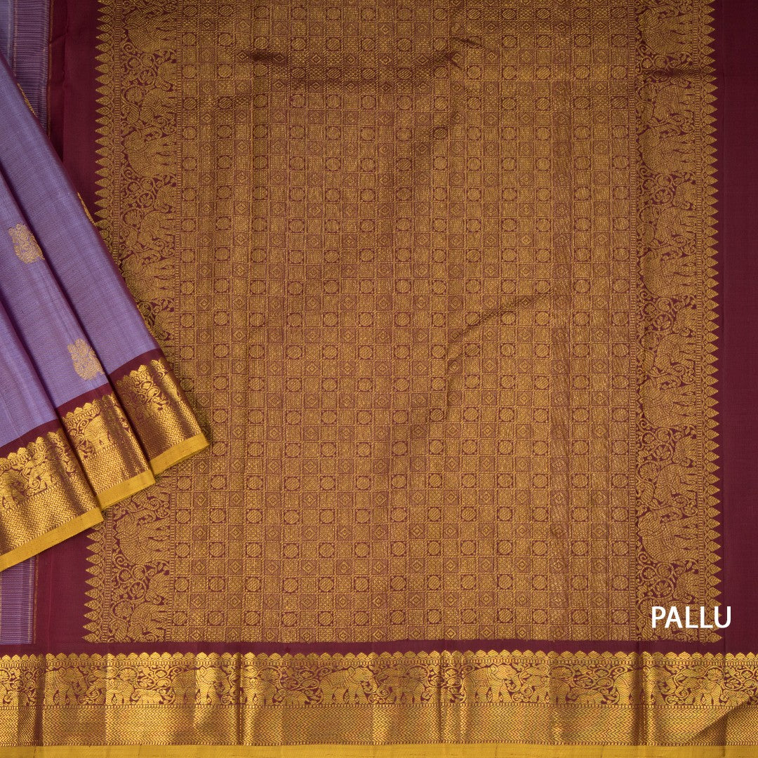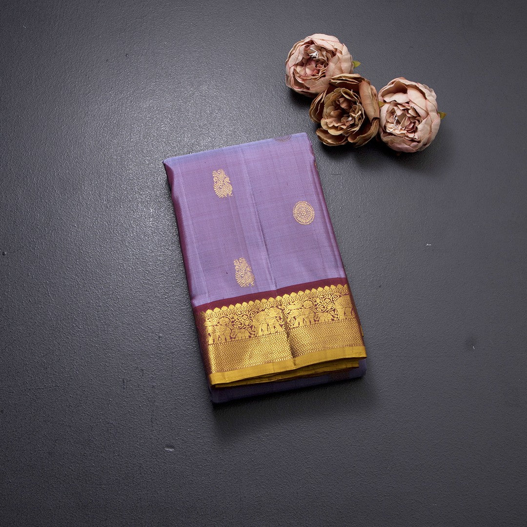 Shot Colour Silk Saree With Peacock And Chakra Buttas And Gold Zari Border