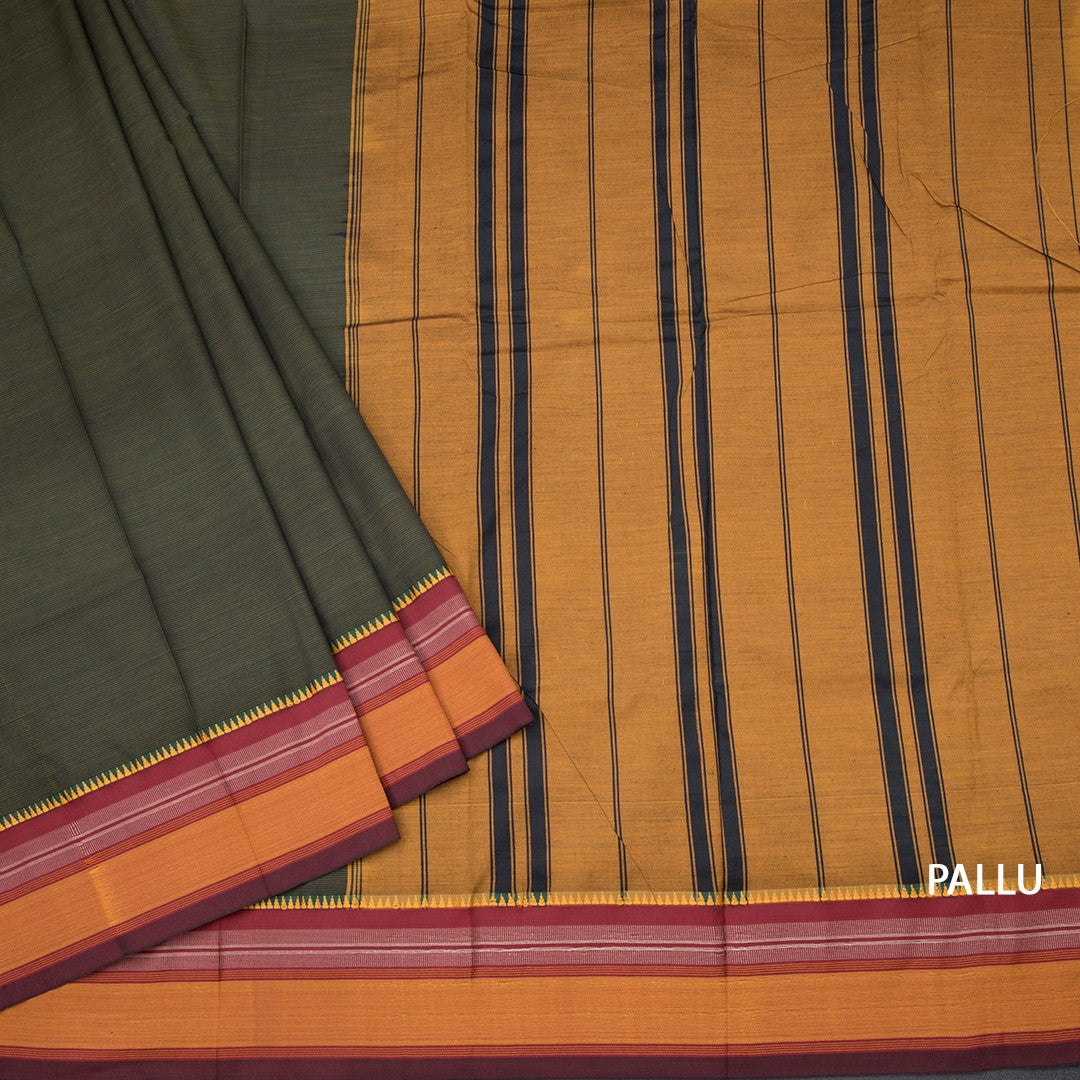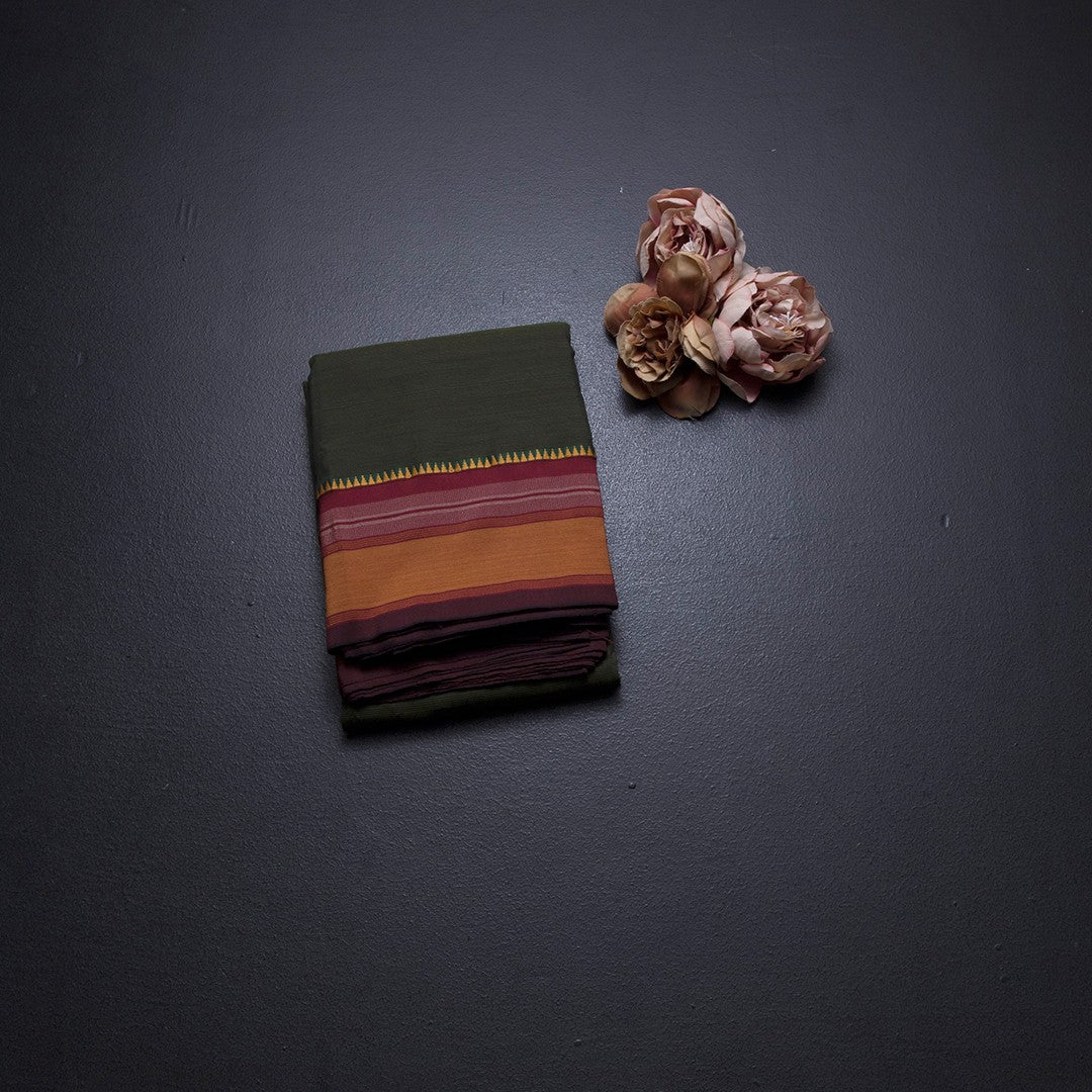 Dharwad Cotton Dark Green Striped Saree