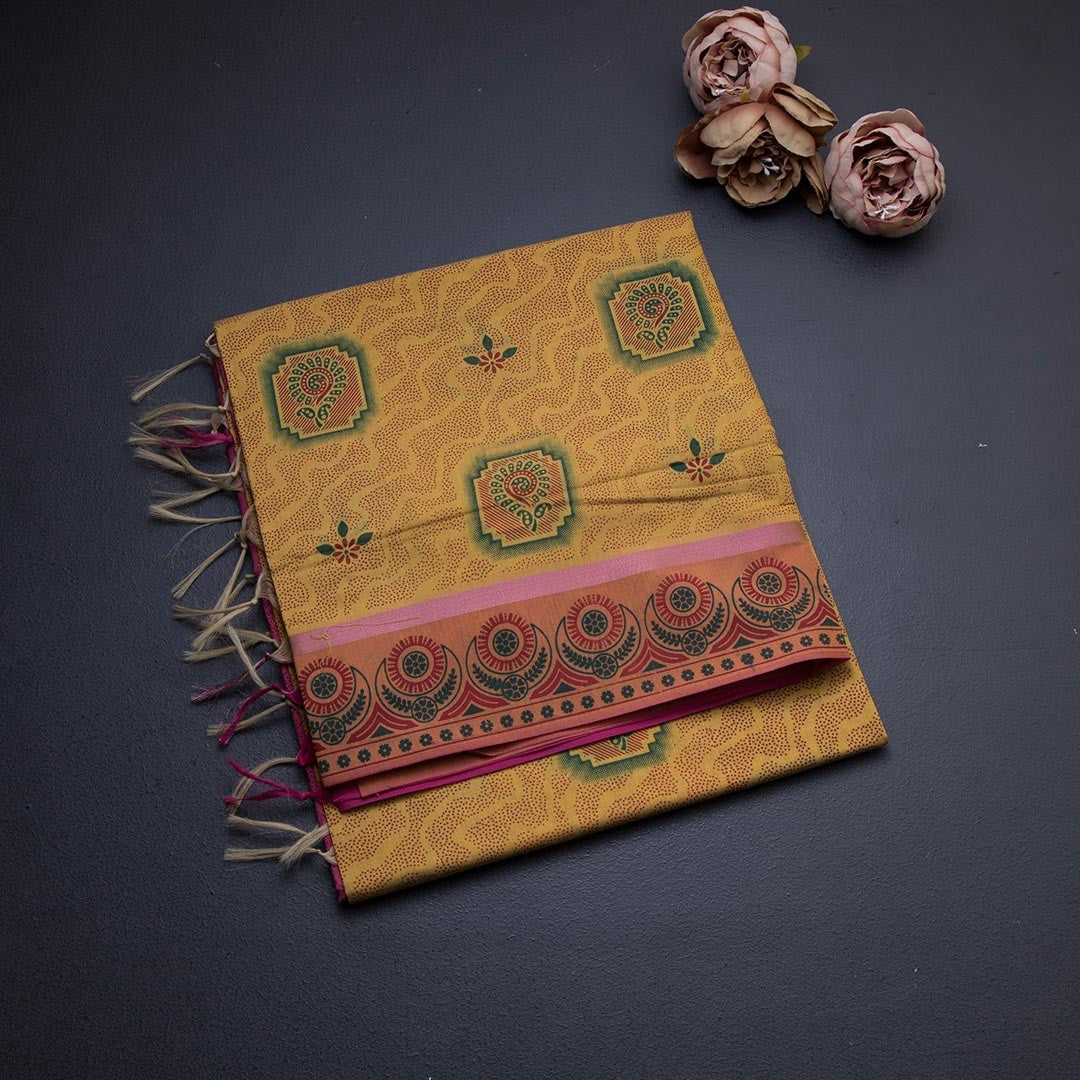 Yellow Poly Cotton Printed Saree, Latest and trendy Polycotton Sarees perfect for every occasion at affordable prices.