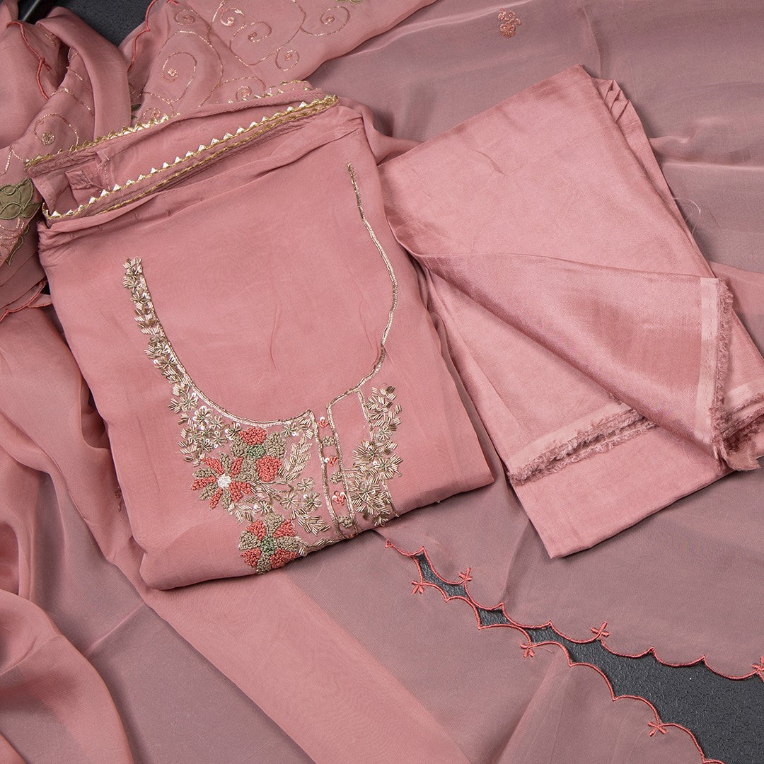 Mul Cotton Onion Pink Unstitched Salwar Material With Dupatta 03