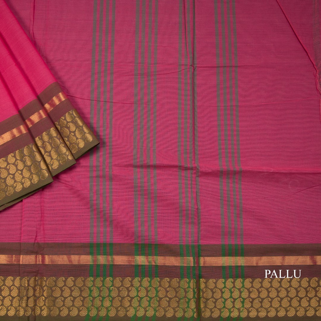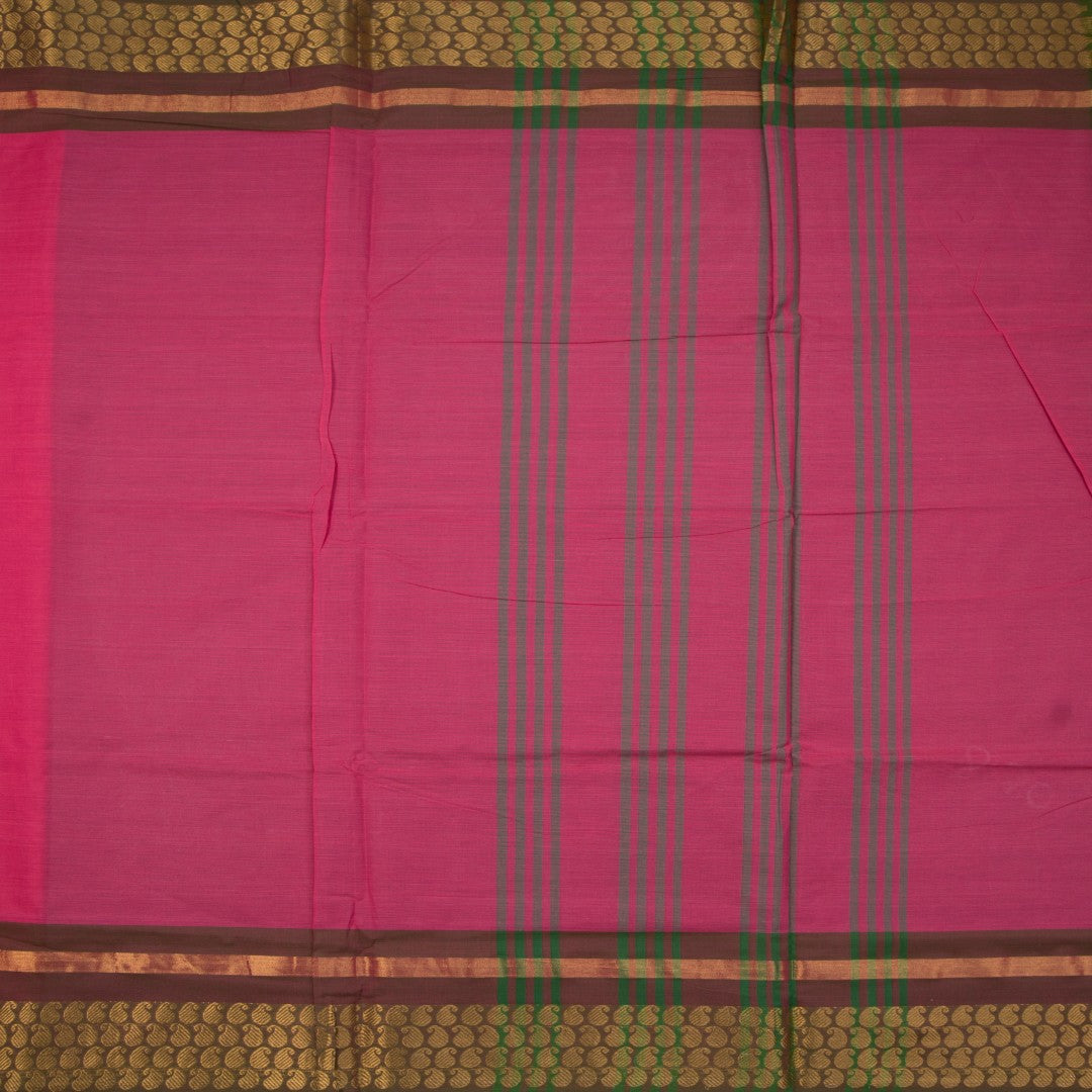 9 Yards Chettinad Cotton Hot Pink Saree With Zari Border Without Blouse