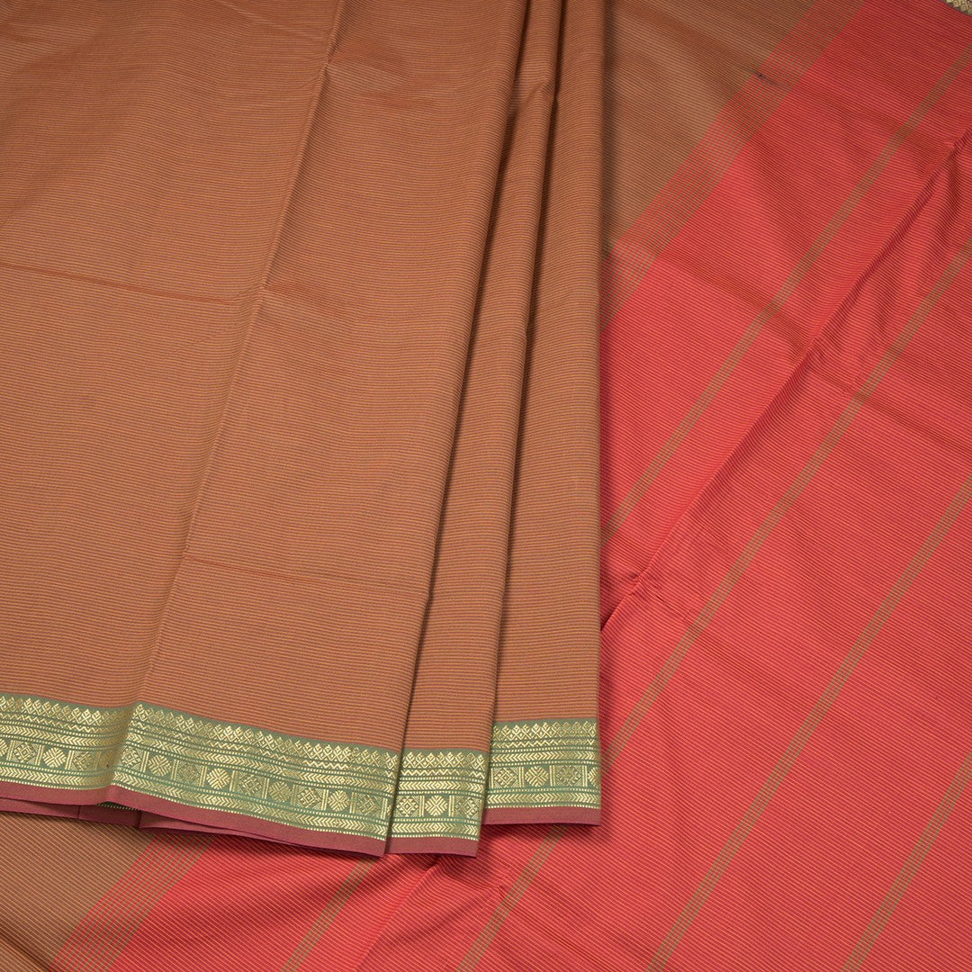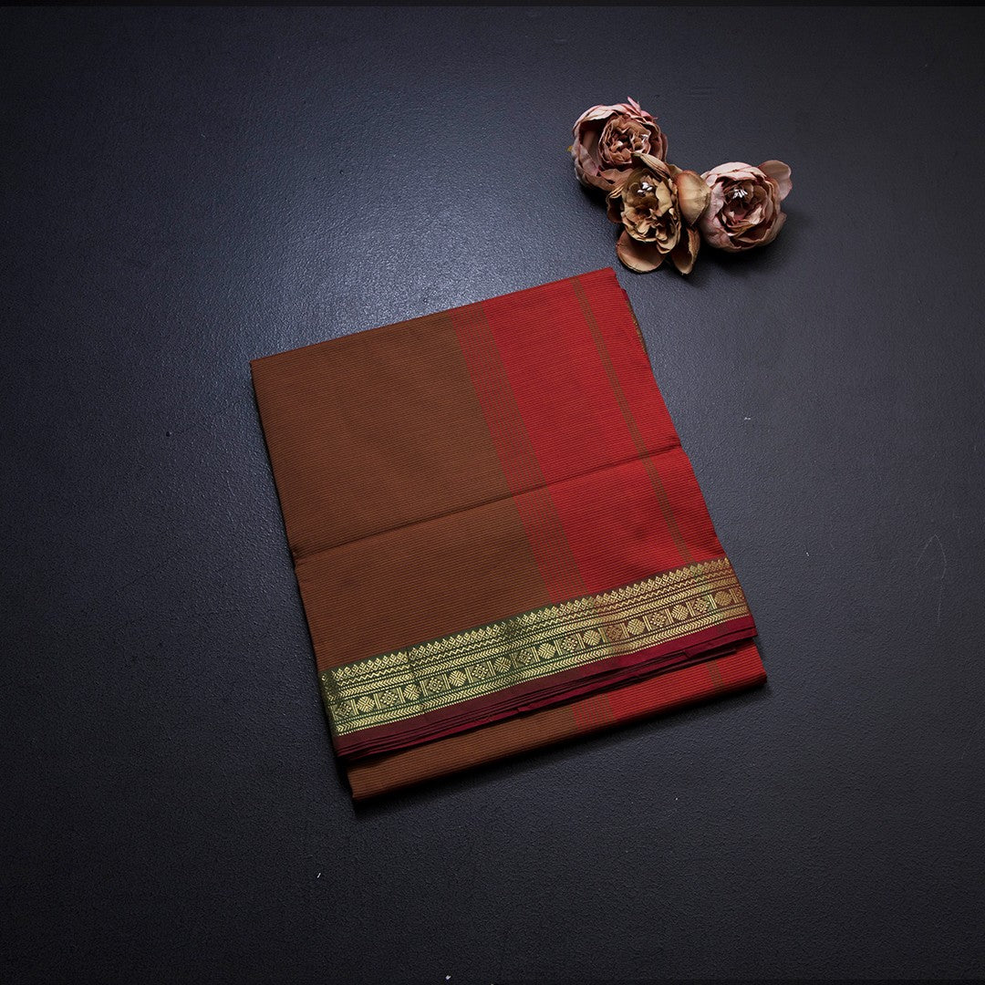 Poly Cotton Cinnamon Brown Saree With Zari Border