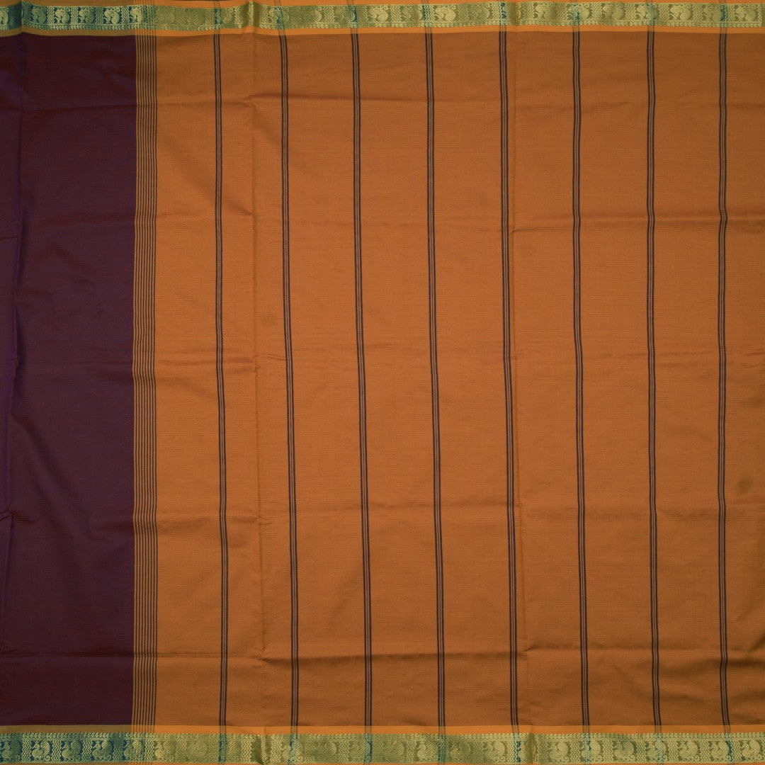 Poly Cotton Dark Purple Saree With Peacock Zari Border