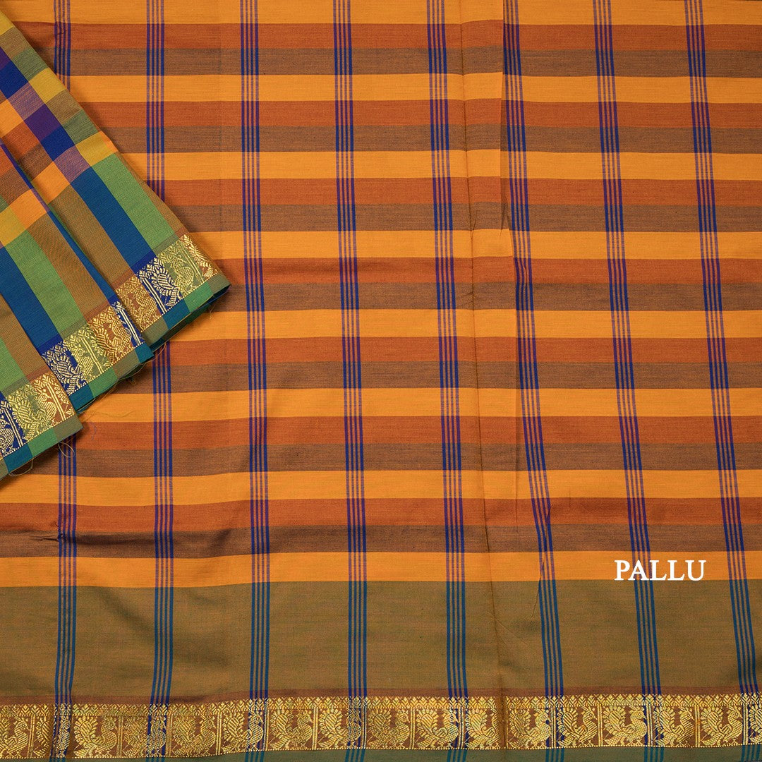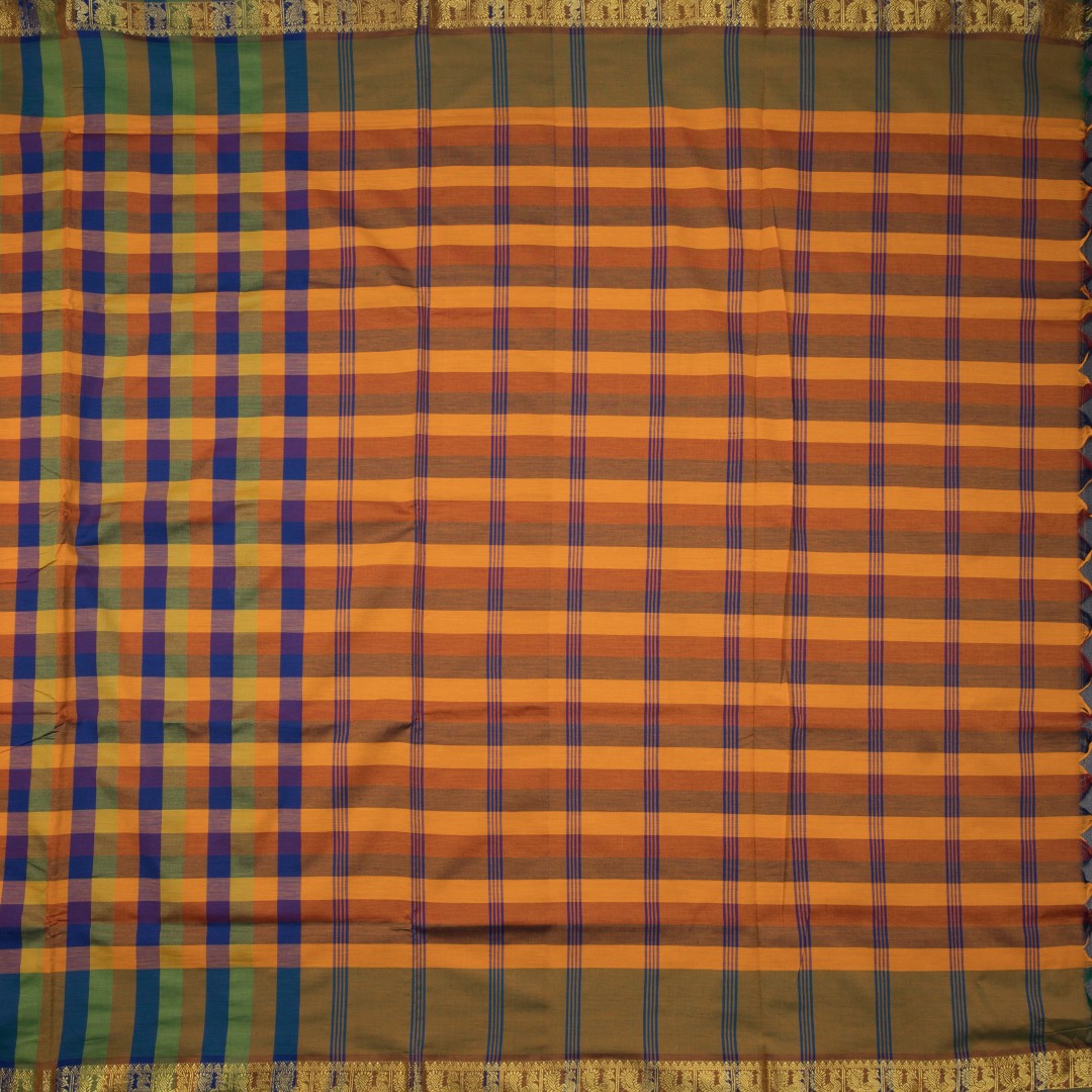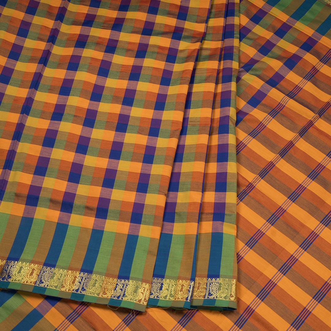 Poly Cotton Multi Colour Checked Saree 11