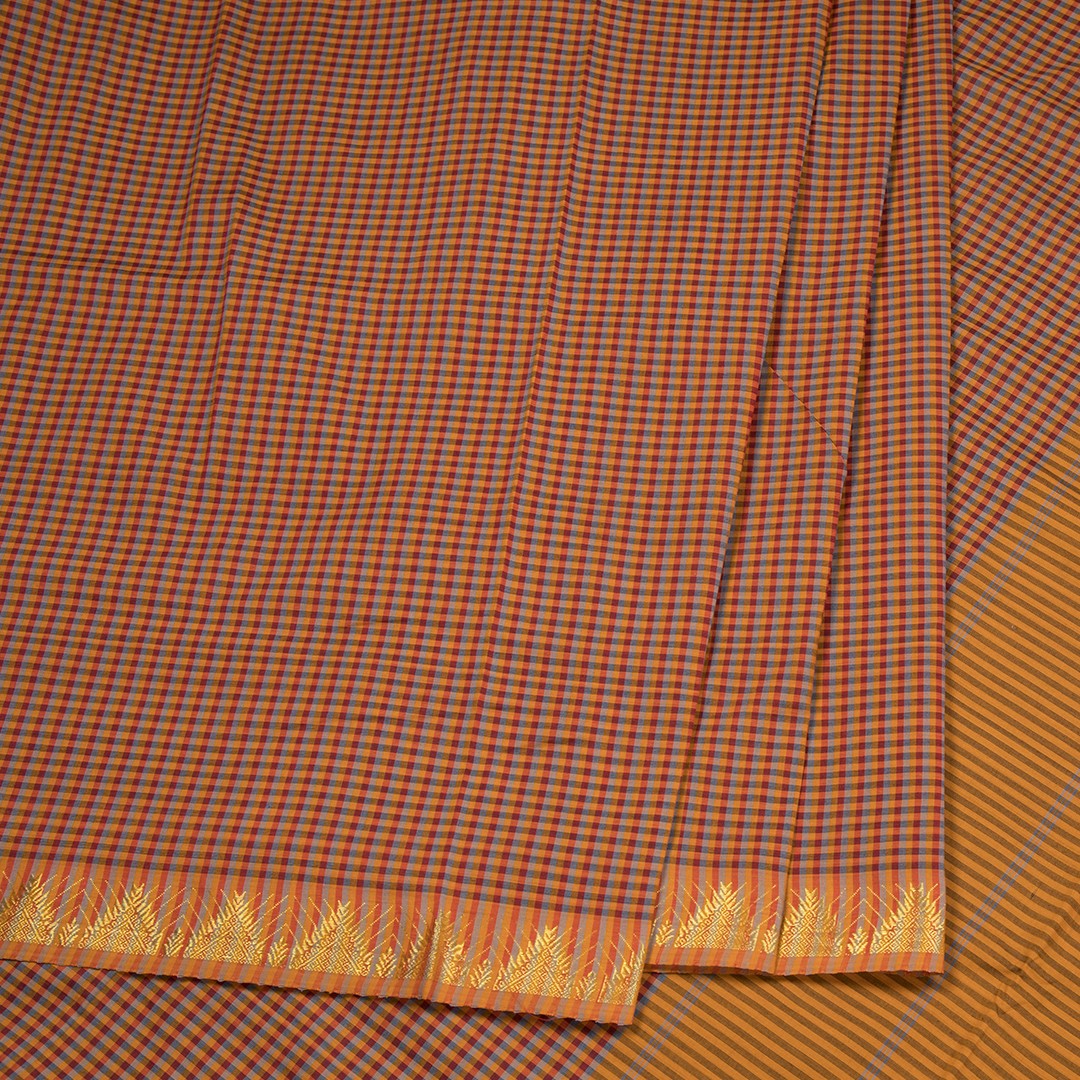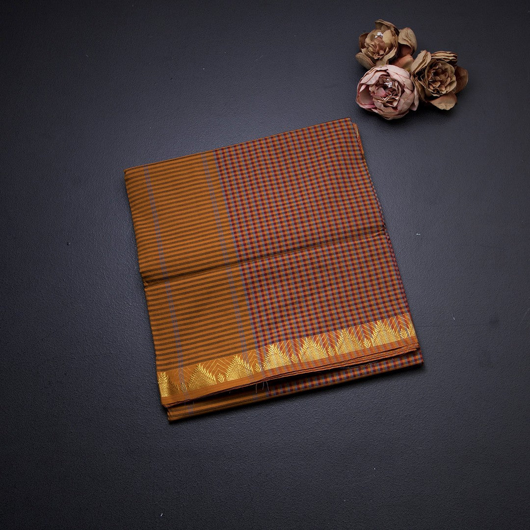 Poly Cotton Multi Colour Checked Saree With Temple Zari Border, Latest and trendy Polycotton Sarees perfect for every occasion at affordable prices.