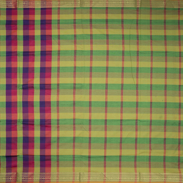 Poly Cotton Multi Colour Checked Saree With Zari Border