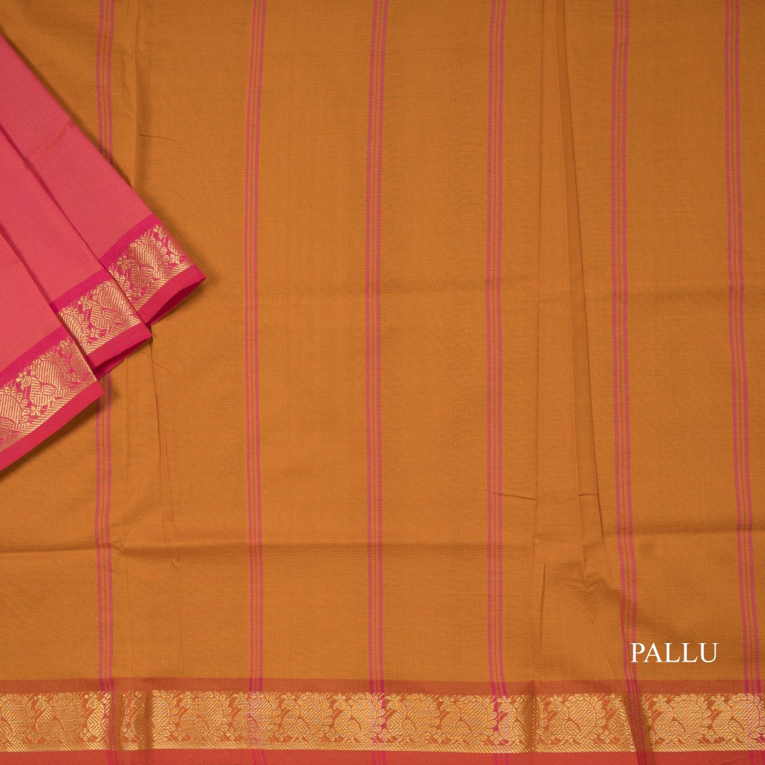 Poly Cotton Shot Colour Plain Saree With Peacock Zari Border