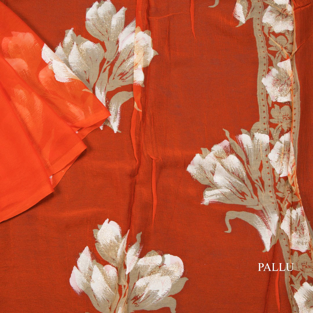 Chiffon Fanta Orange Printed Saree, A new range of printed collection for this summer. Have fun under the sun dressed in this chiffon sarees with pleasing prints in elegant colours.