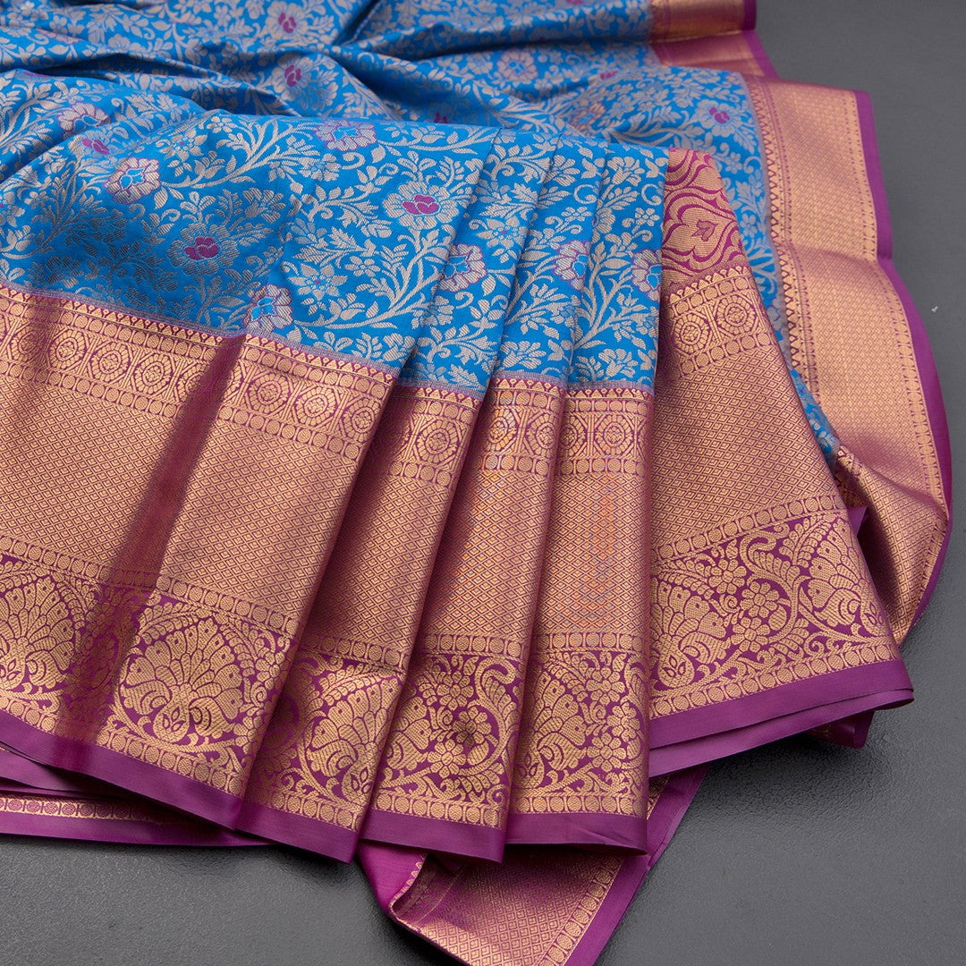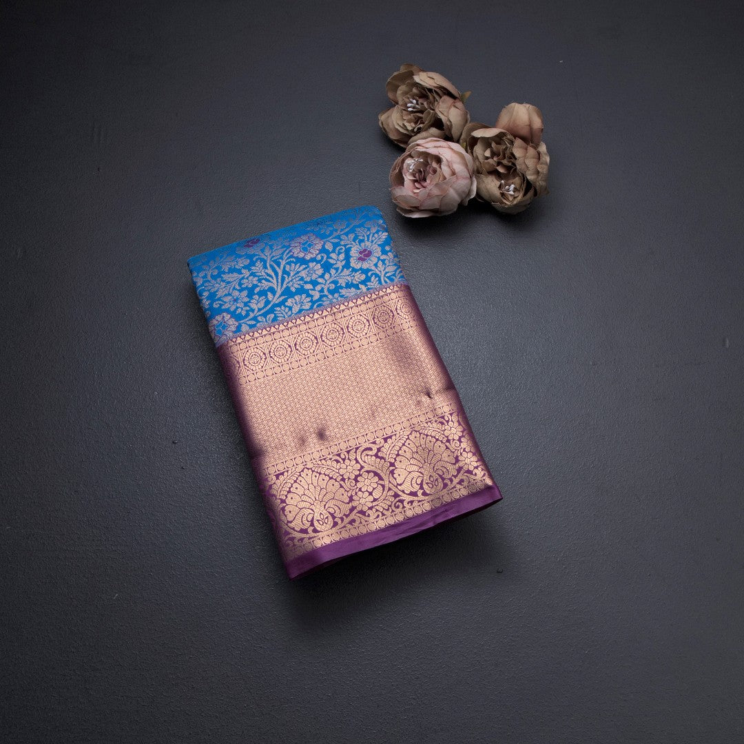 Blue Semi Silk Saree With Contrast Border 01