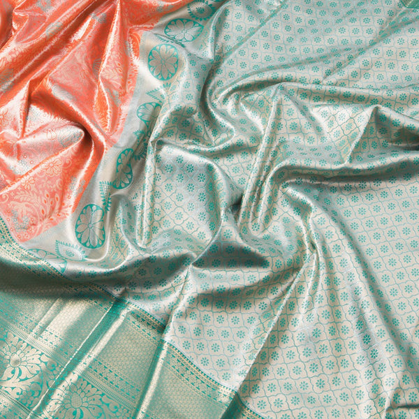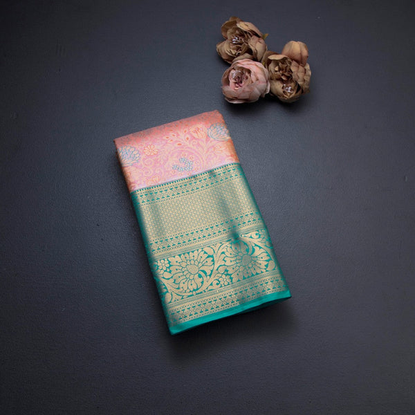 Light Orange Semi Silk Saree With Contrast Border, Semi silk saree gives you the feel of pure silk saree. Colourful art silk drapes with contrastingly beautiful borders for you to pick up for casual wear.
