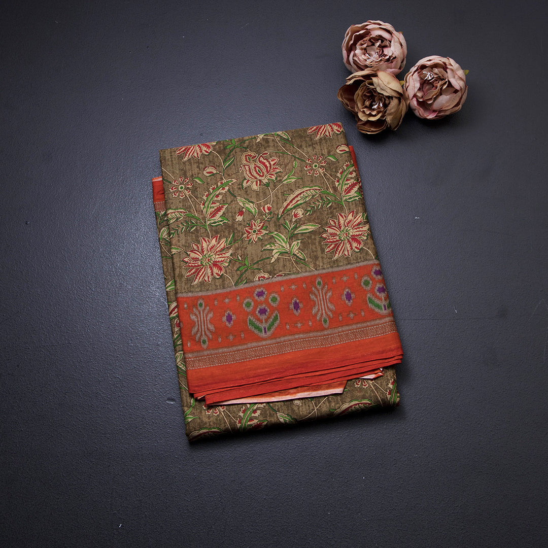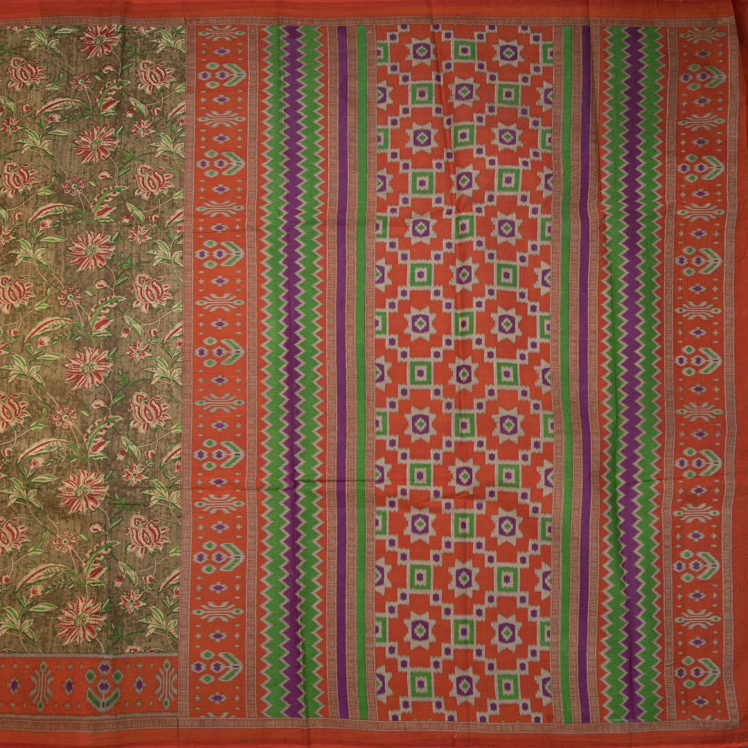 Chanderi Cotton Olive Green Floral Printed Saree 02