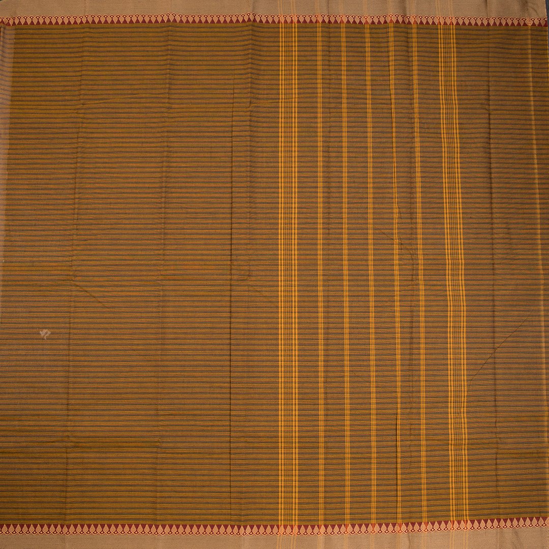 Chettinad Cotton Brown Horizontal Stripe Saree Thread Border Without Blouse