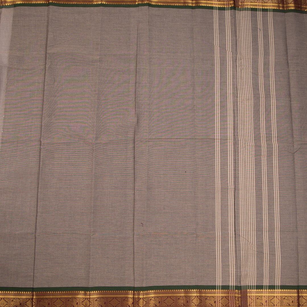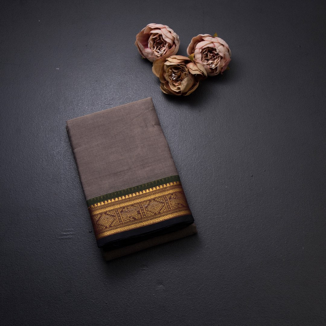 Chettinad Cotton Grey Plain Saree Traditional Zari Border Without Blouse