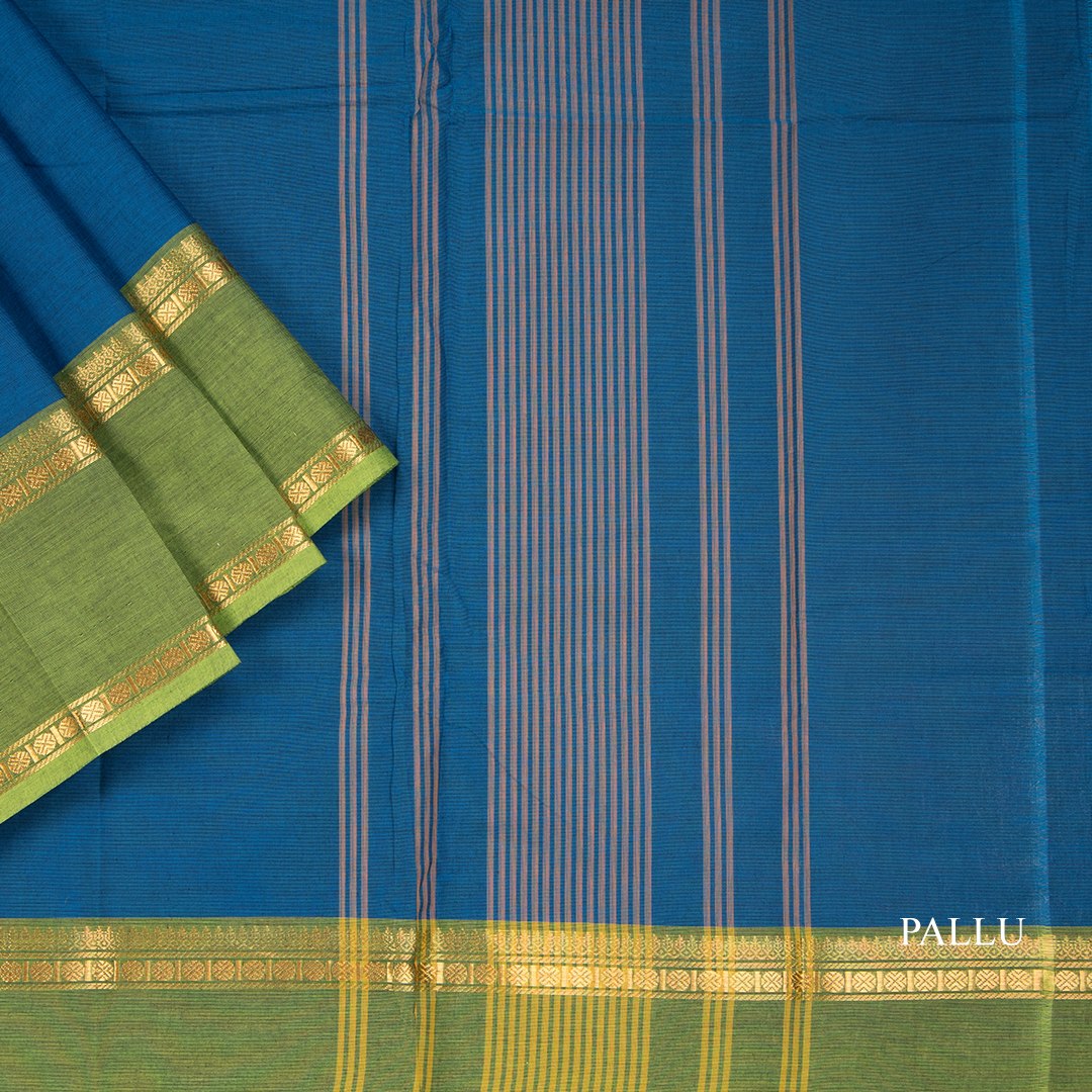 Chettinad Cotton Sea Blue Saree Rettapet Without Blouse