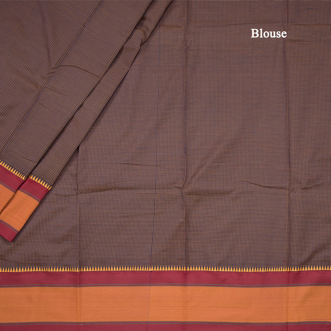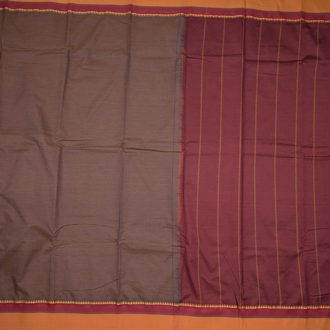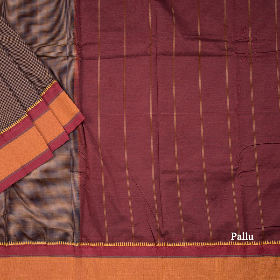 Dharwad Cotton Dark Maroon Micro Checked Saree 02
