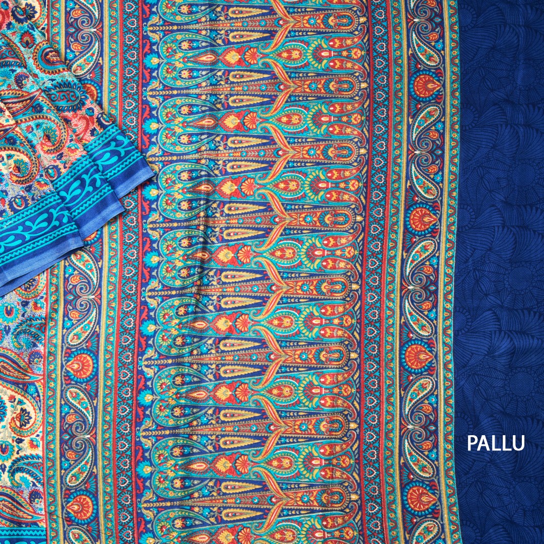 Faux Crepe Blue Printed Saree 05