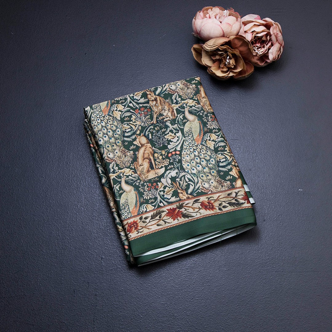 Faux Crepe Multi Colour Printed Saree 19, Lustrous faux crepe saree adorning ravishing printed designed with a perfect contrast border is all set to fetch you complements at your favourite party! Yes! Now get dressed in ultra glam sarees for parties too!