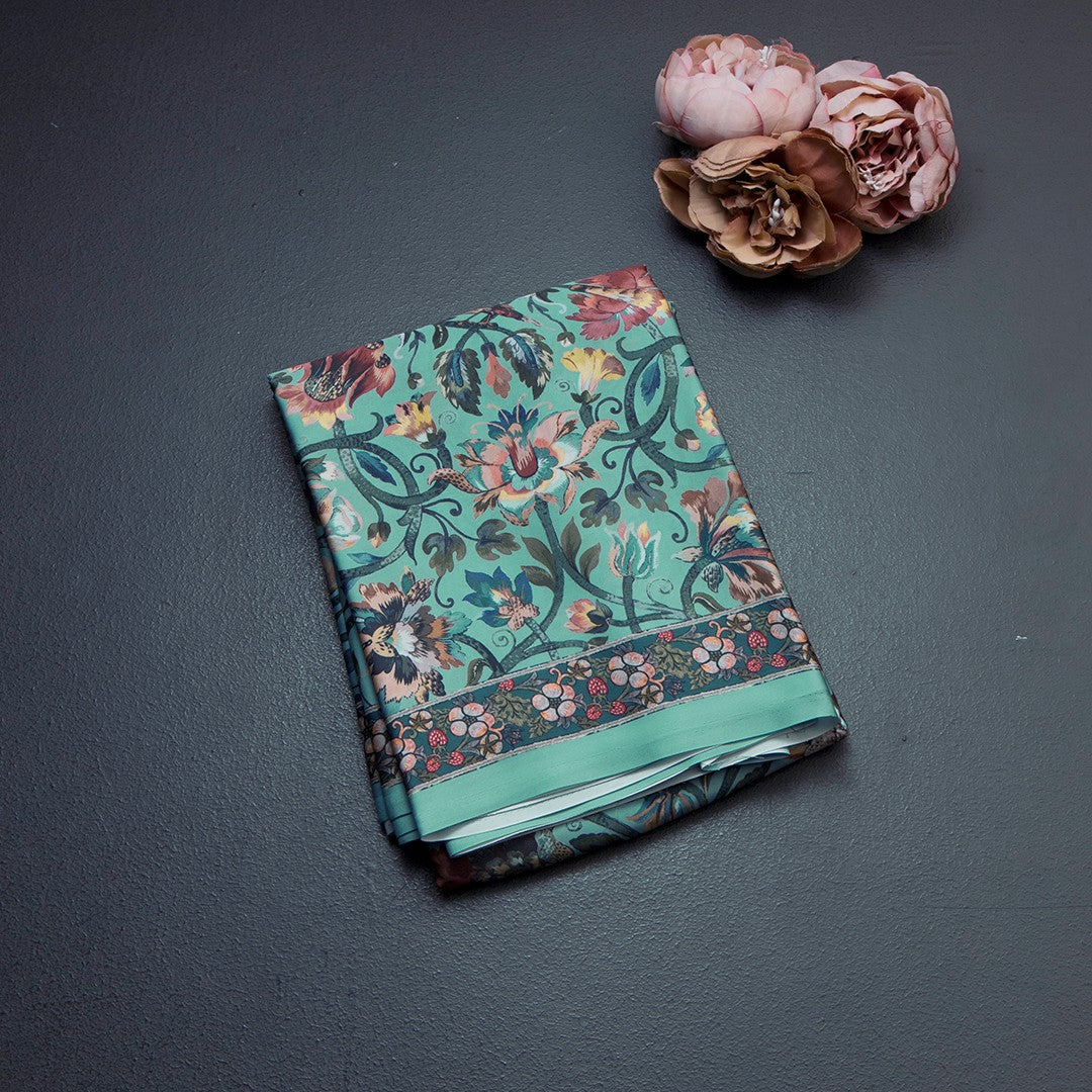 Faux Crepe Pista Green Printed Saree