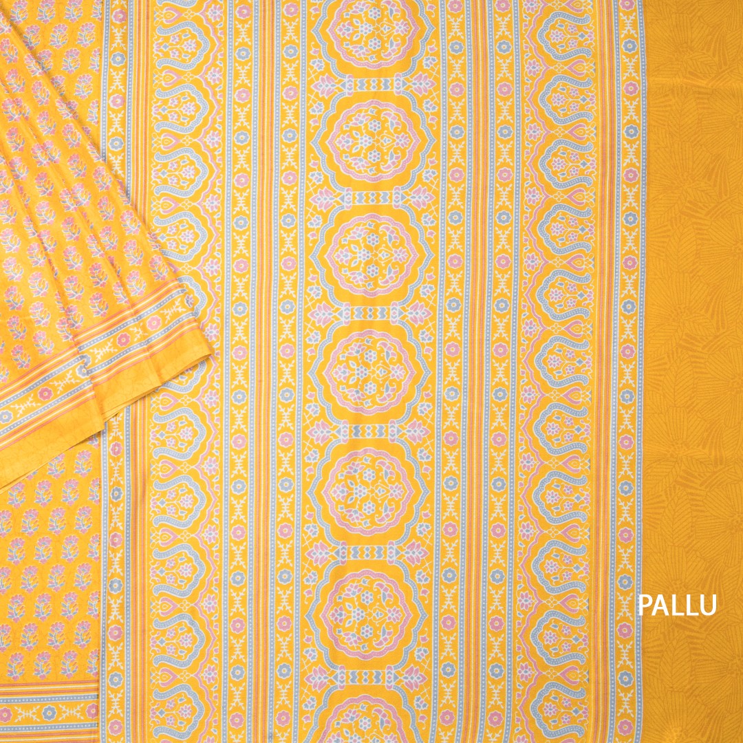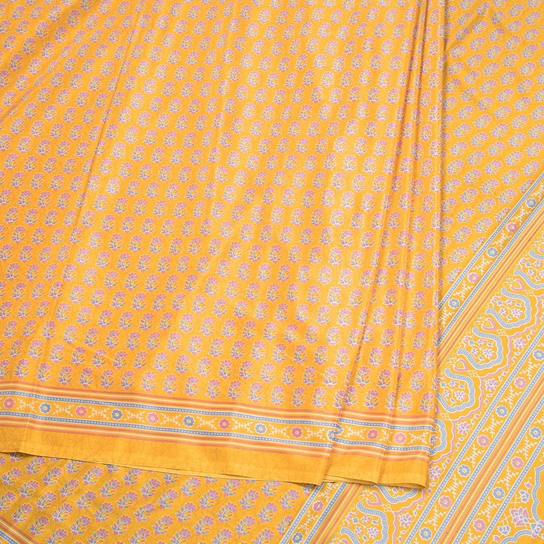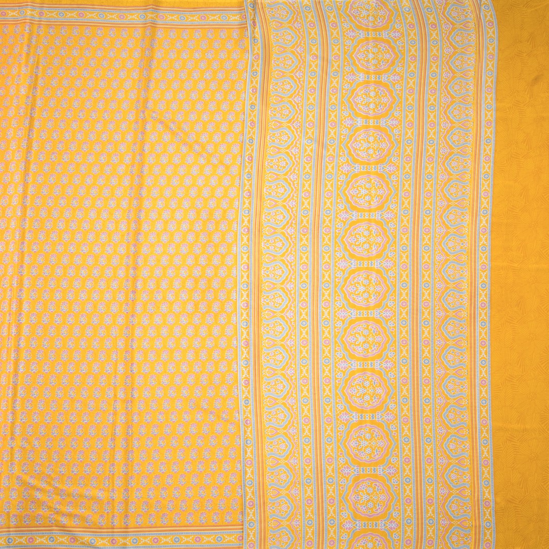 Faux Crepe Yellow Printed Saree 03, Lustrous faux crepe saree adorning ravishing printed designed with a perfect contrast border is all set to fetch you complements at your favourite party! Yes! Now get dressed in ultra glam sarees for parties too!