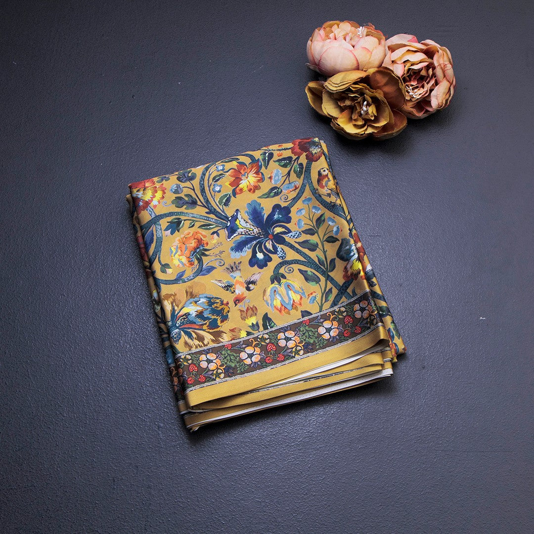 Faux Crepe Yellow Printed Saree 04