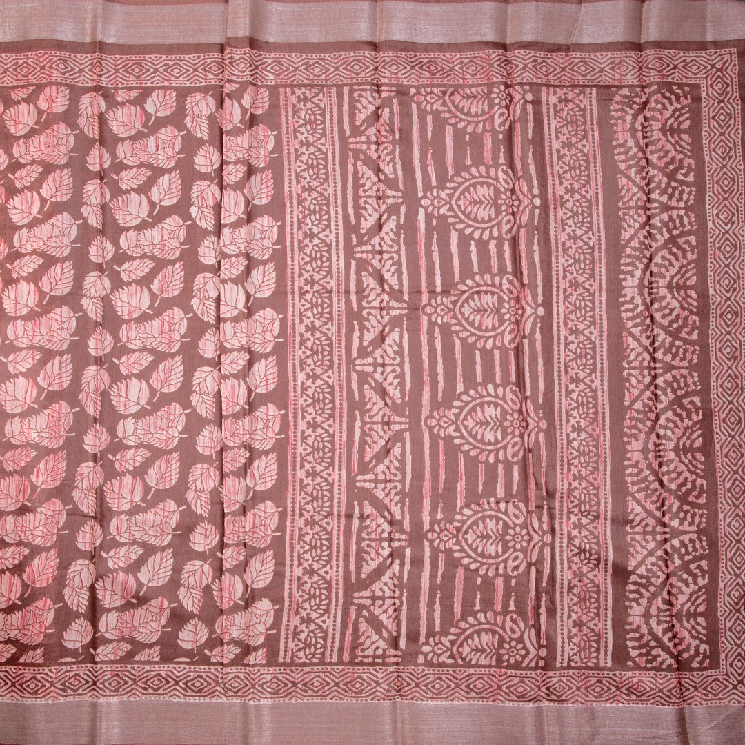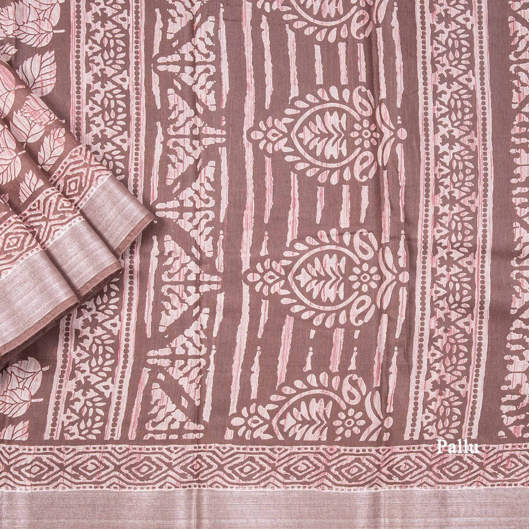 Semi Tussar Brown Printed Saree 02, Look stunning dressing up with semi Tussar silk sarees. It is an unexampled epitome of delicacy, rich textured attribute, and the natural impression.
