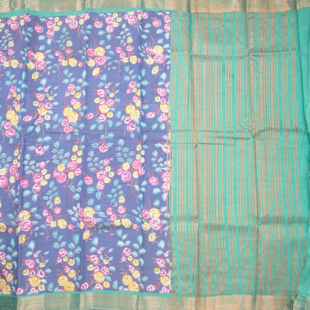 Semi Tussar Dusty Blue Printed Saree, Look stunning dressing up with semi Tussar silk sarees. It is an unexampled epitome of delicacy, rich textured attribute, and the natural impression.