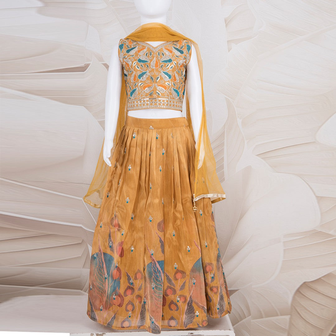 Mustard Yellow Embroided Lehanga Choli, A lovely Lehanga suit for your little girl to flaunt at your favourite places. With contrasting colours doll up your little ones for any occasion.