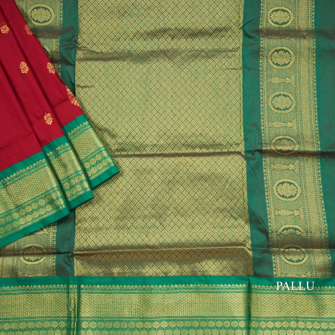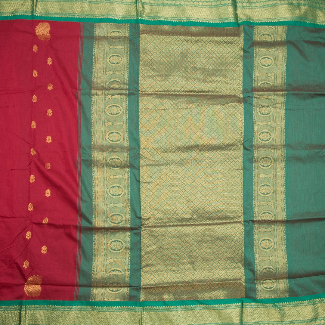 Kalyani Cotton Maroon Saree With Zari Buttas And Contrast Border 03