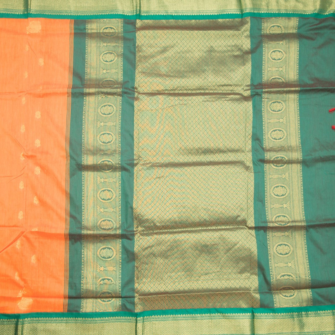 Kalyani Cotton Orange Saree With Zari Buttas And Contrast Border