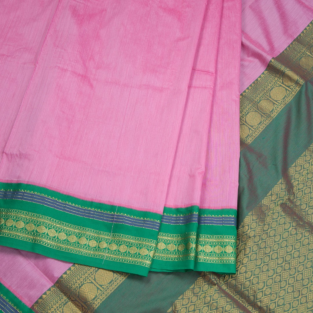 Kalyani Cotton Pink Saree With Zari Buttas And Contrast Border, Kalyani Cotton sarees carry the spirit of simplicity and its evergreen appeal. This Saree gives an elegant look and stunning appearance with color body along with border.
