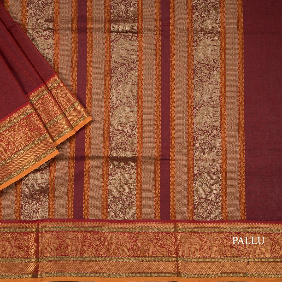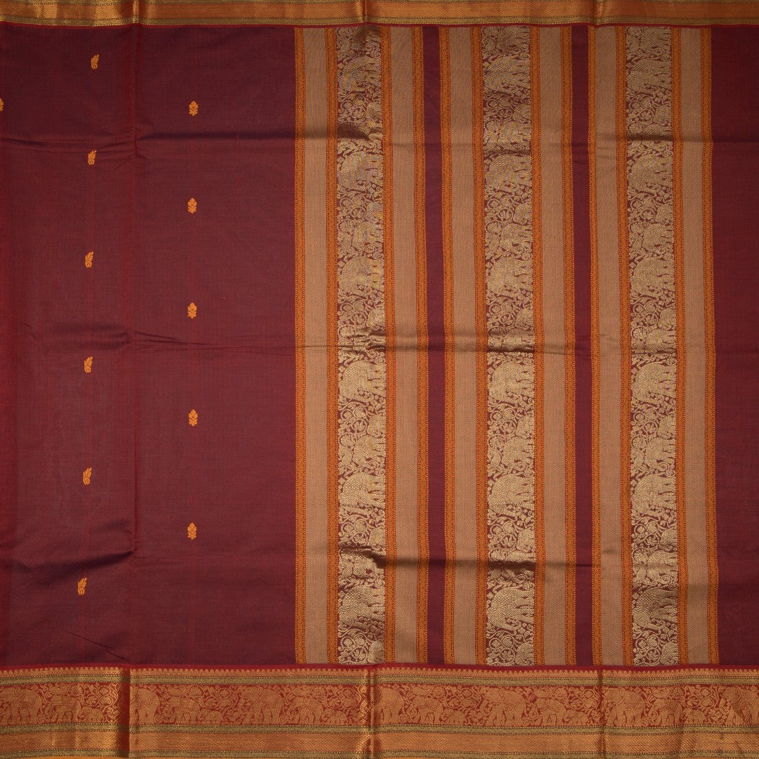 Kanchi Cotton Maroon Saree With Thread Buttas And Zari Border