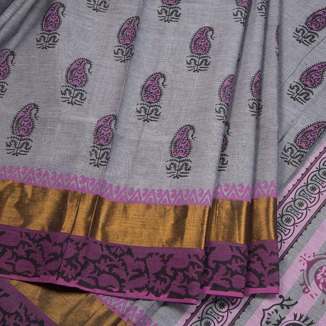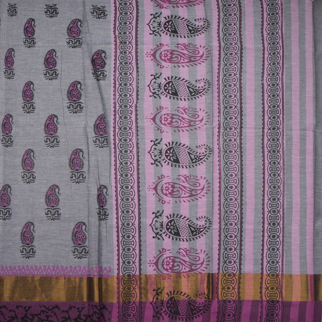 Negamam Cotton Grey Mango Printed Saree, Negamam's handloom cotton sarees are in high demand due toits gorgious designs, vivid colours, and light weight. Every wardrobe needs to contain these items