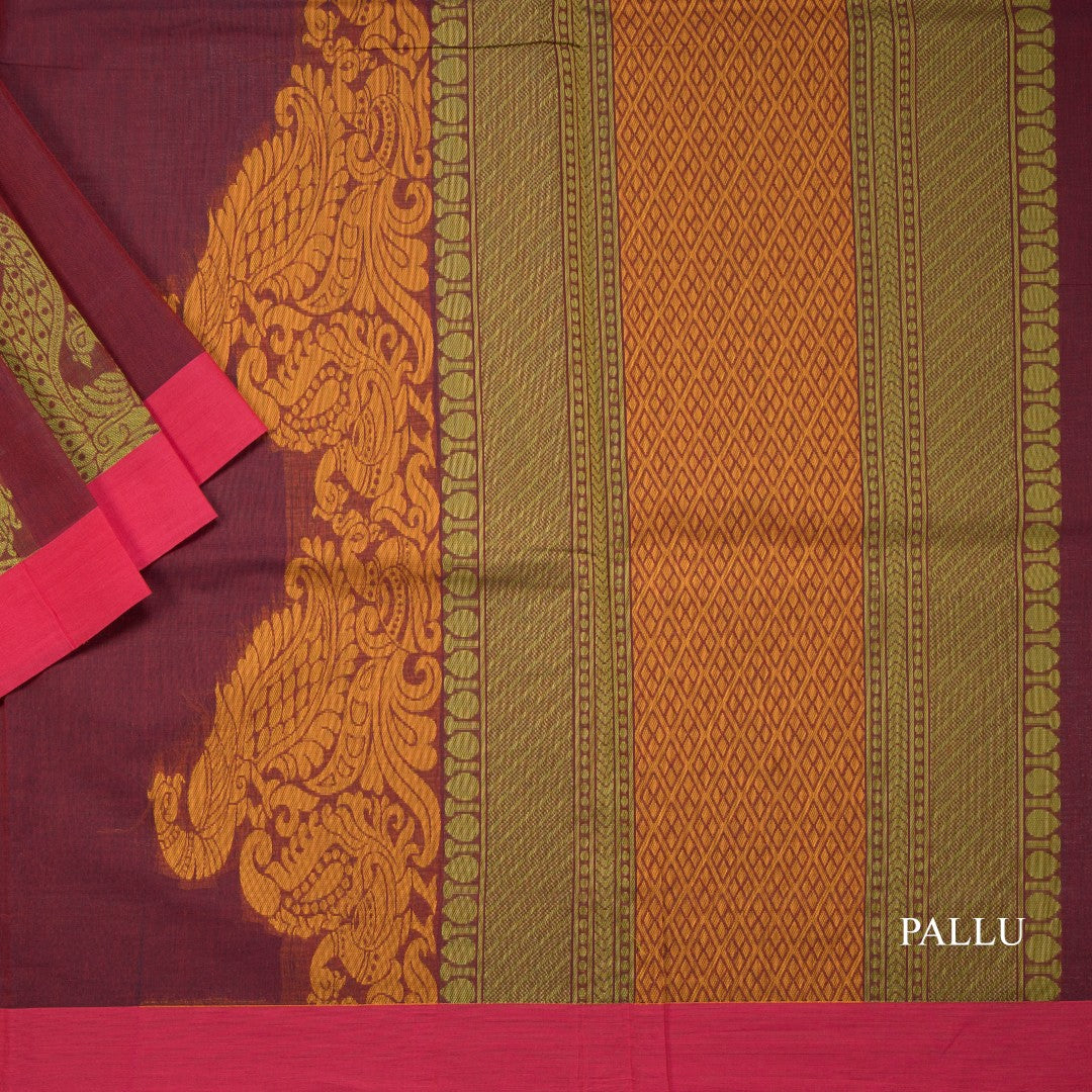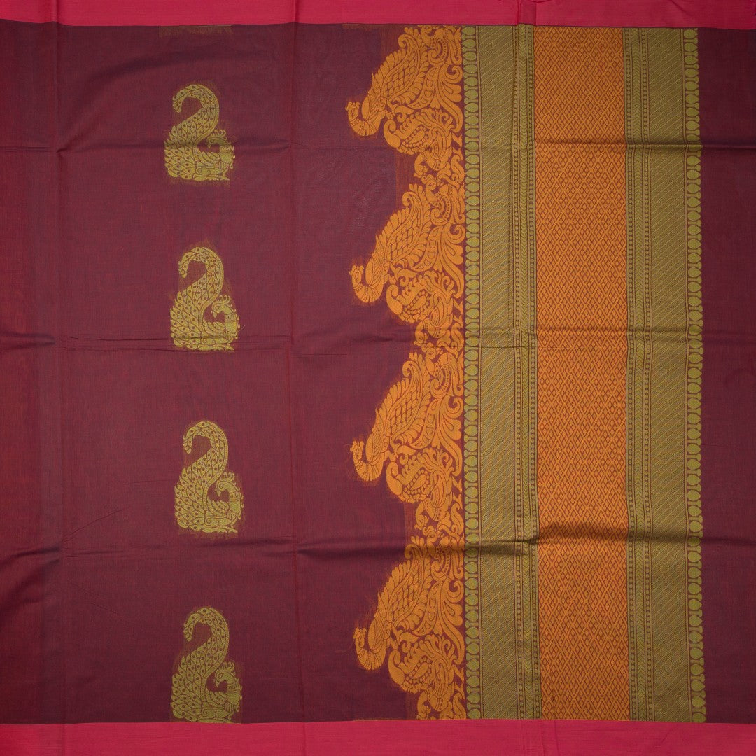 Negamam Cotton Maroon Peacock Embossed Saree, Negamam's handloom cotton sarees are in high demand due toits gorgious designs, vivid colours, and light weight. Every wardrobe needs to contain these items