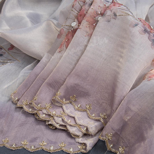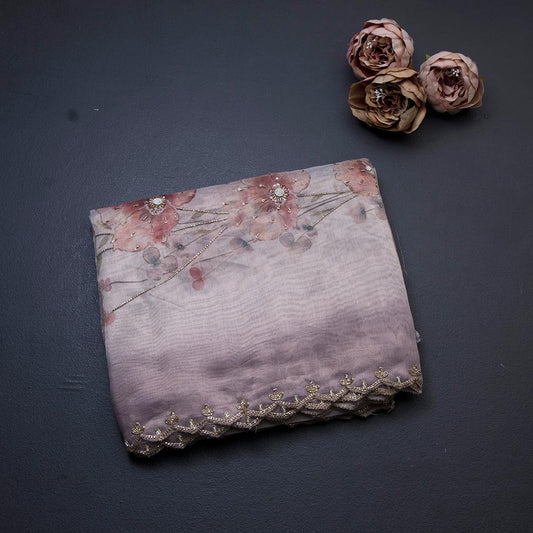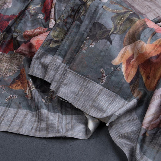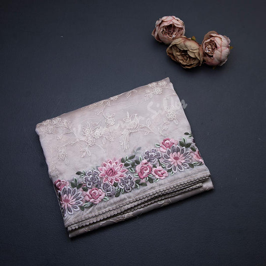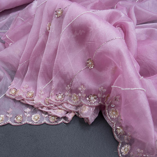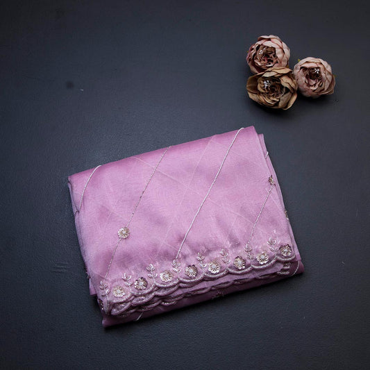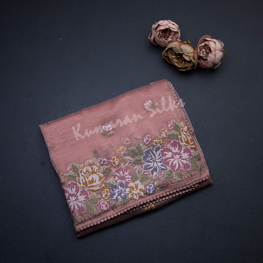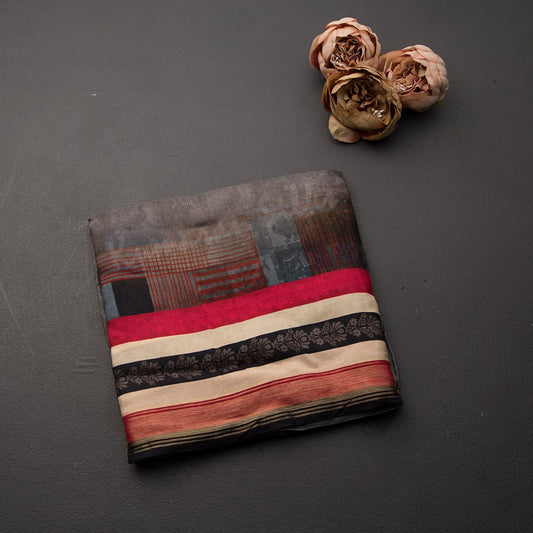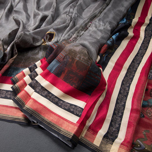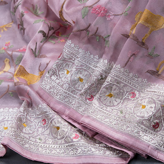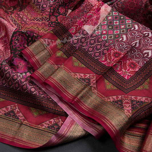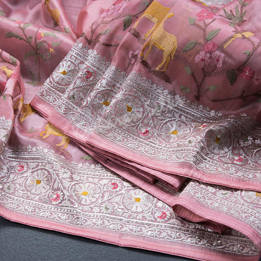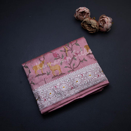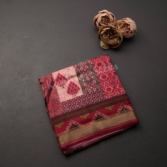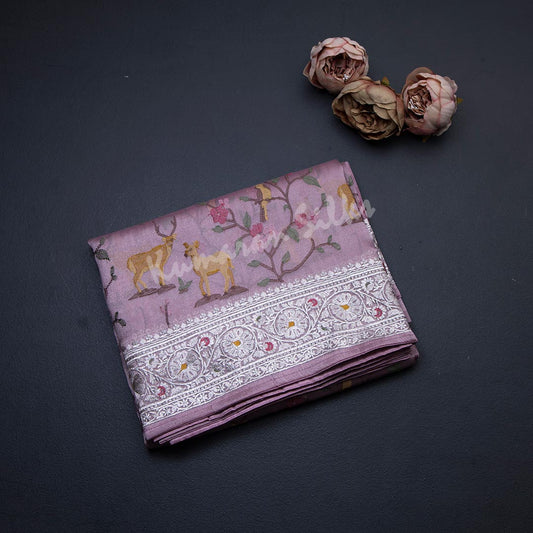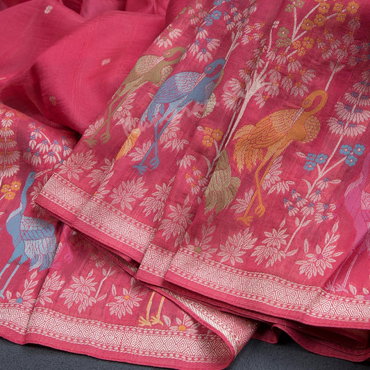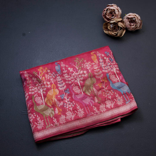 Magenta Silk Saree With Animal Motif On The Body And Zari With Thread Embossed Border