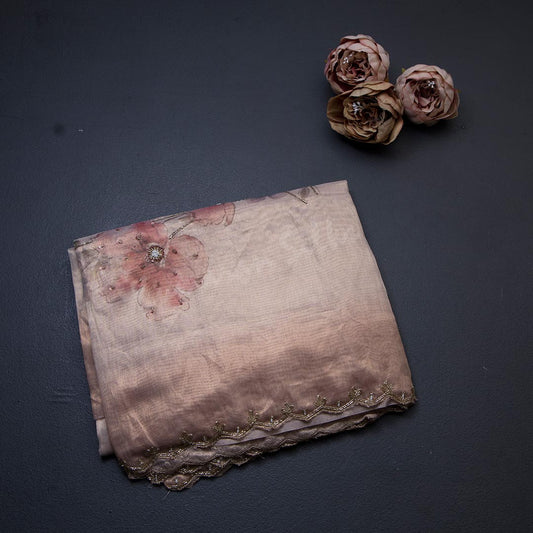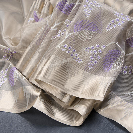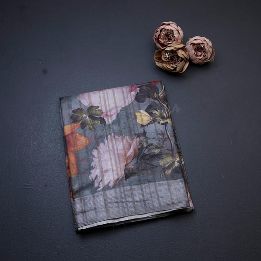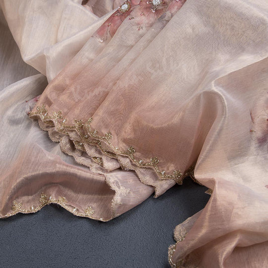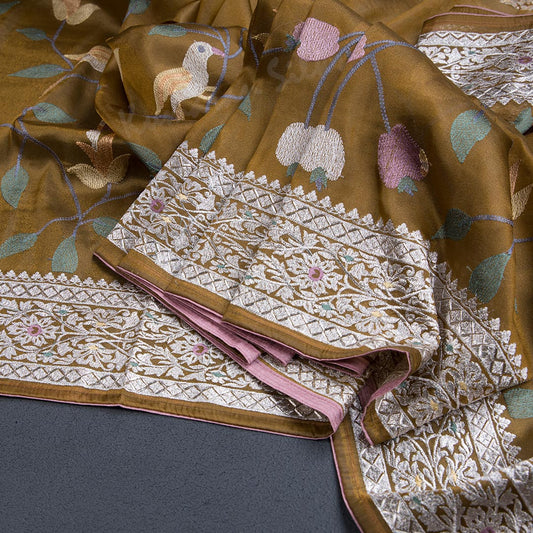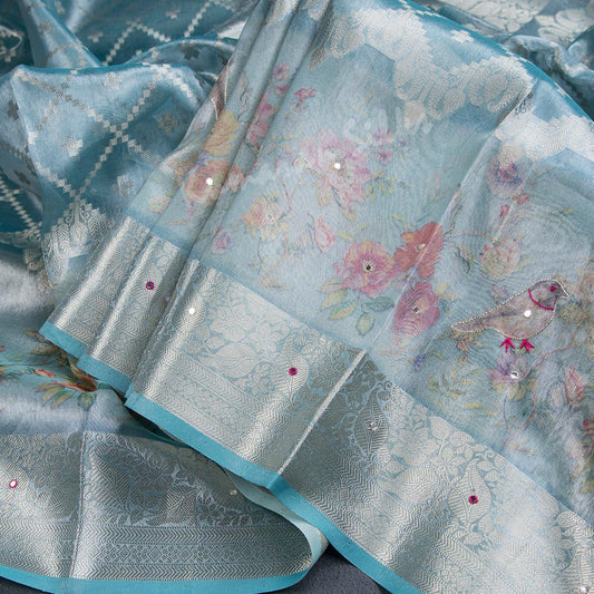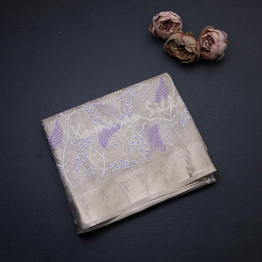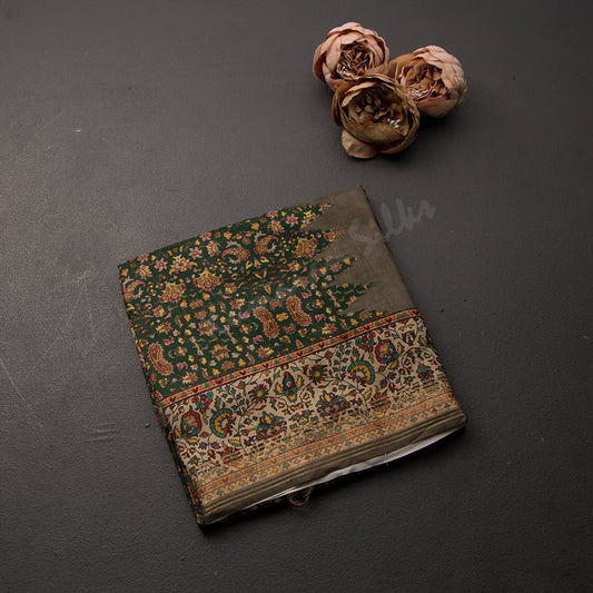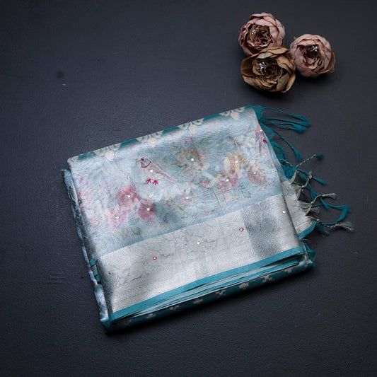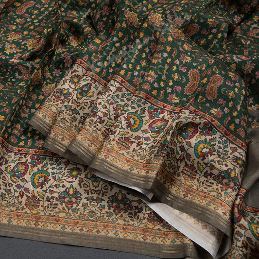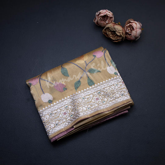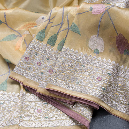 Shot Colour Silk Saree With Peacock And Chakra Buttas And Gold Zari Border