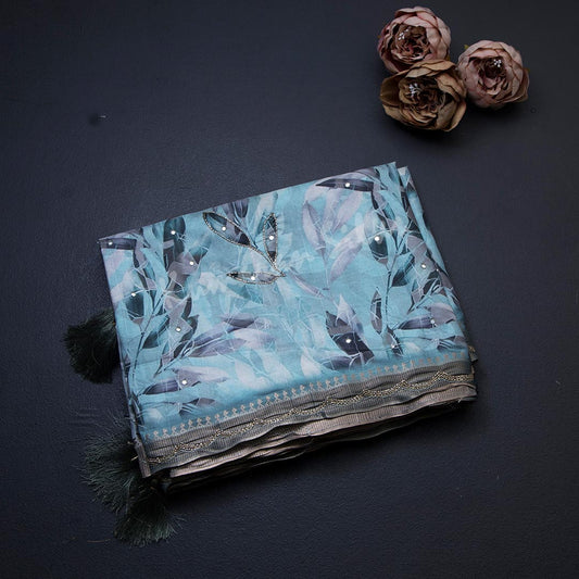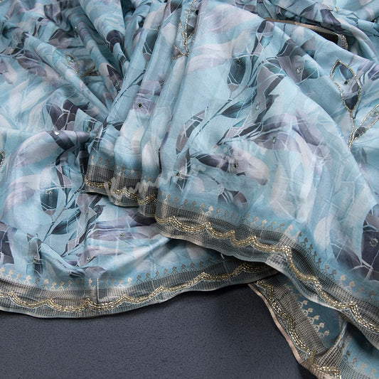 Dark Blue Silk Saree With Peacock And Chakra Buttas And Rettapet Border