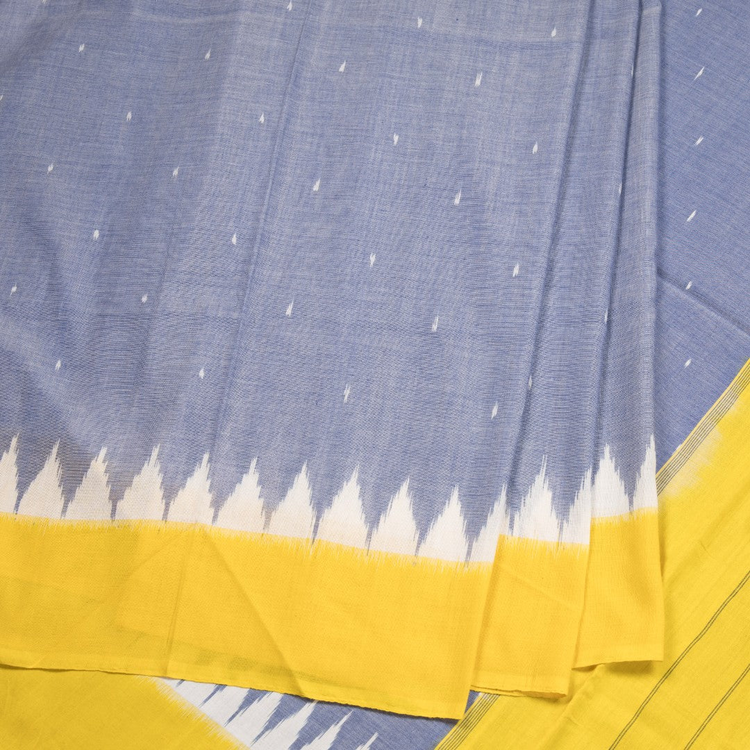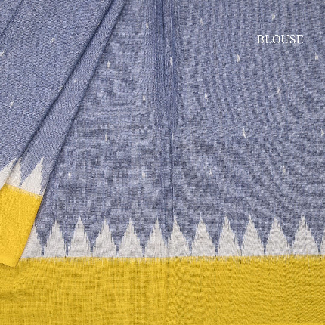 Pochampally Cotton Light Blue Printed Saree With Yellow Border On Temple Design