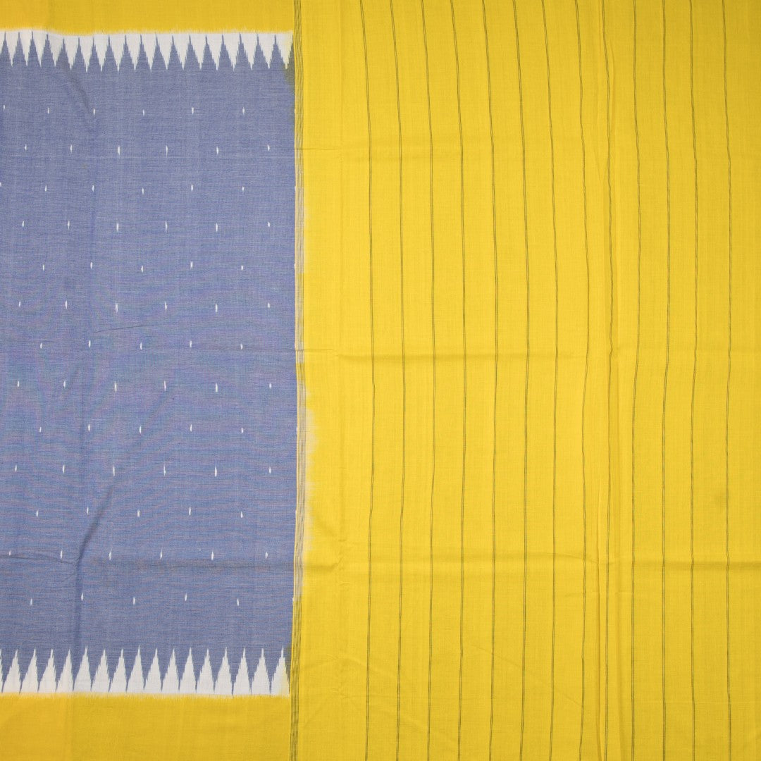 Pochampally Cotton Light Blue Printed Saree With Yellow Border On Temple Design, Cotton sarees have their own charm, and there are multiple reasons to add this ethnic wear to your wardrobe, especially during summers