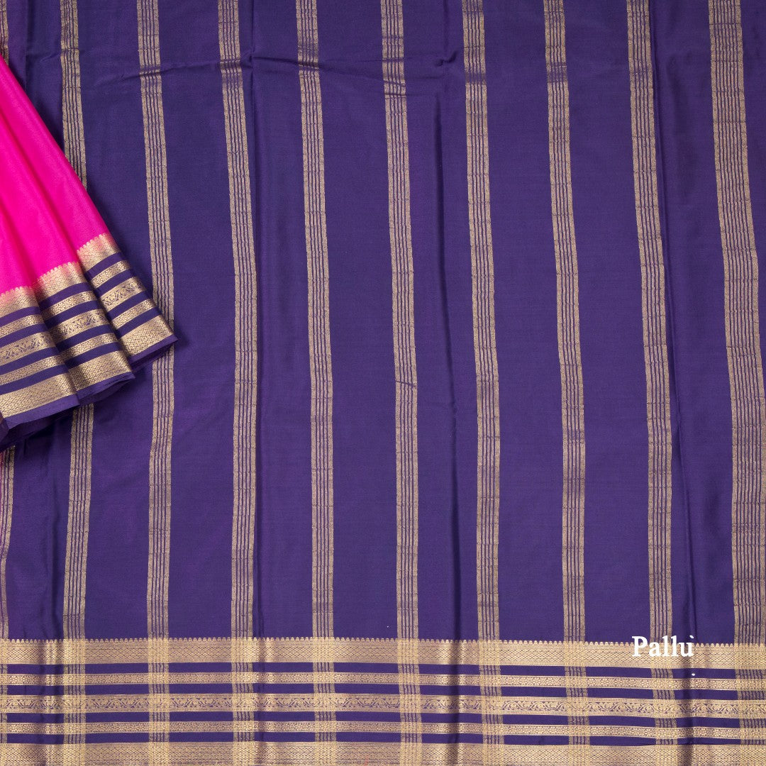 Semi Mysore Silk Dark Pink Plain Saree 02
