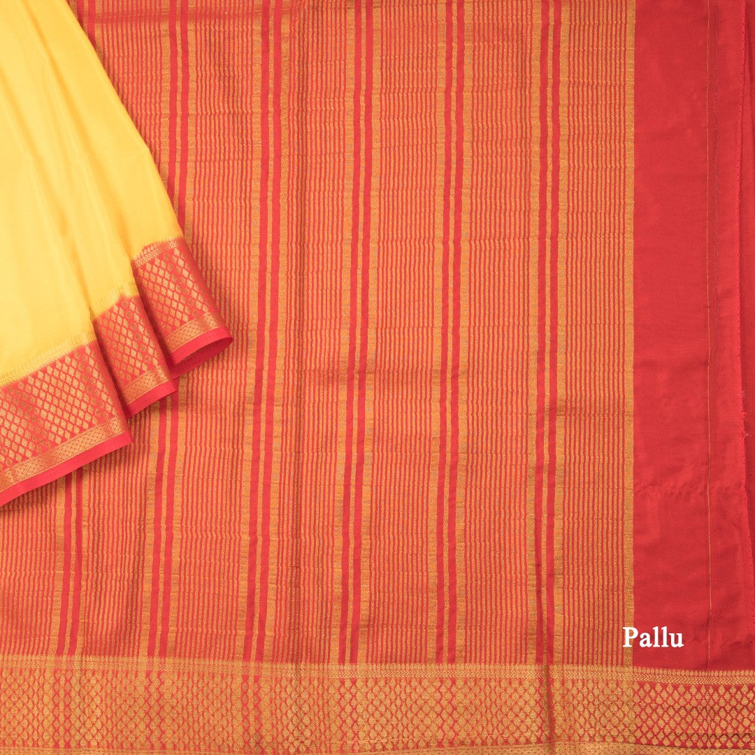 Semi Mysore Silk Lemon Yellow Plain Saree