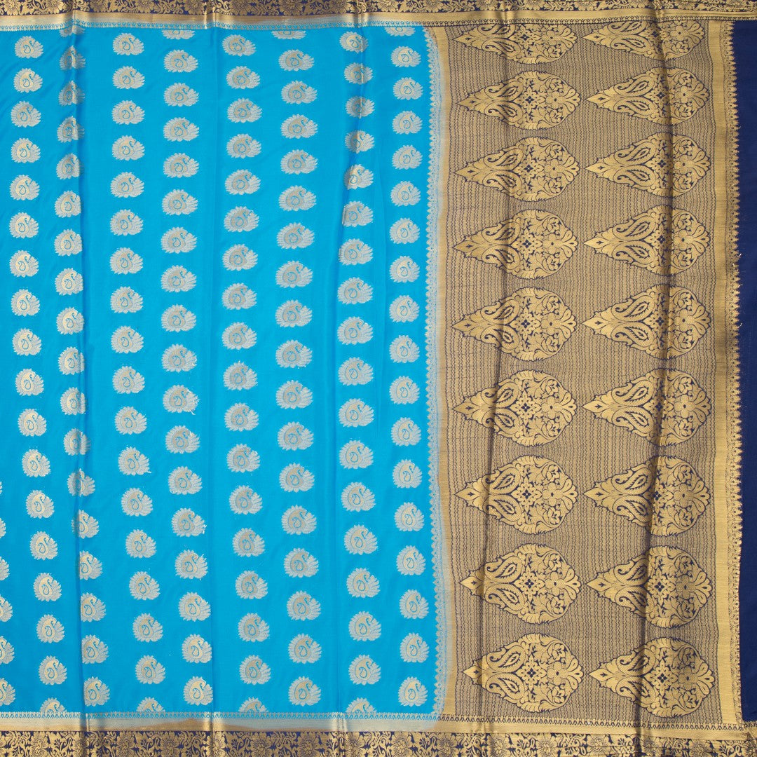 Semi Mysore Silk Sky Blue Embroidered Saree 03