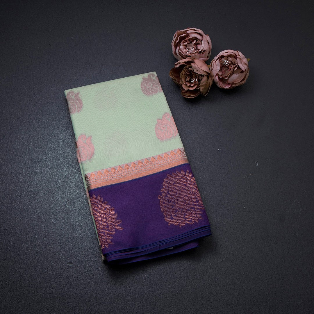 Silk Cotton Mint Green Zari Worked Saree 06