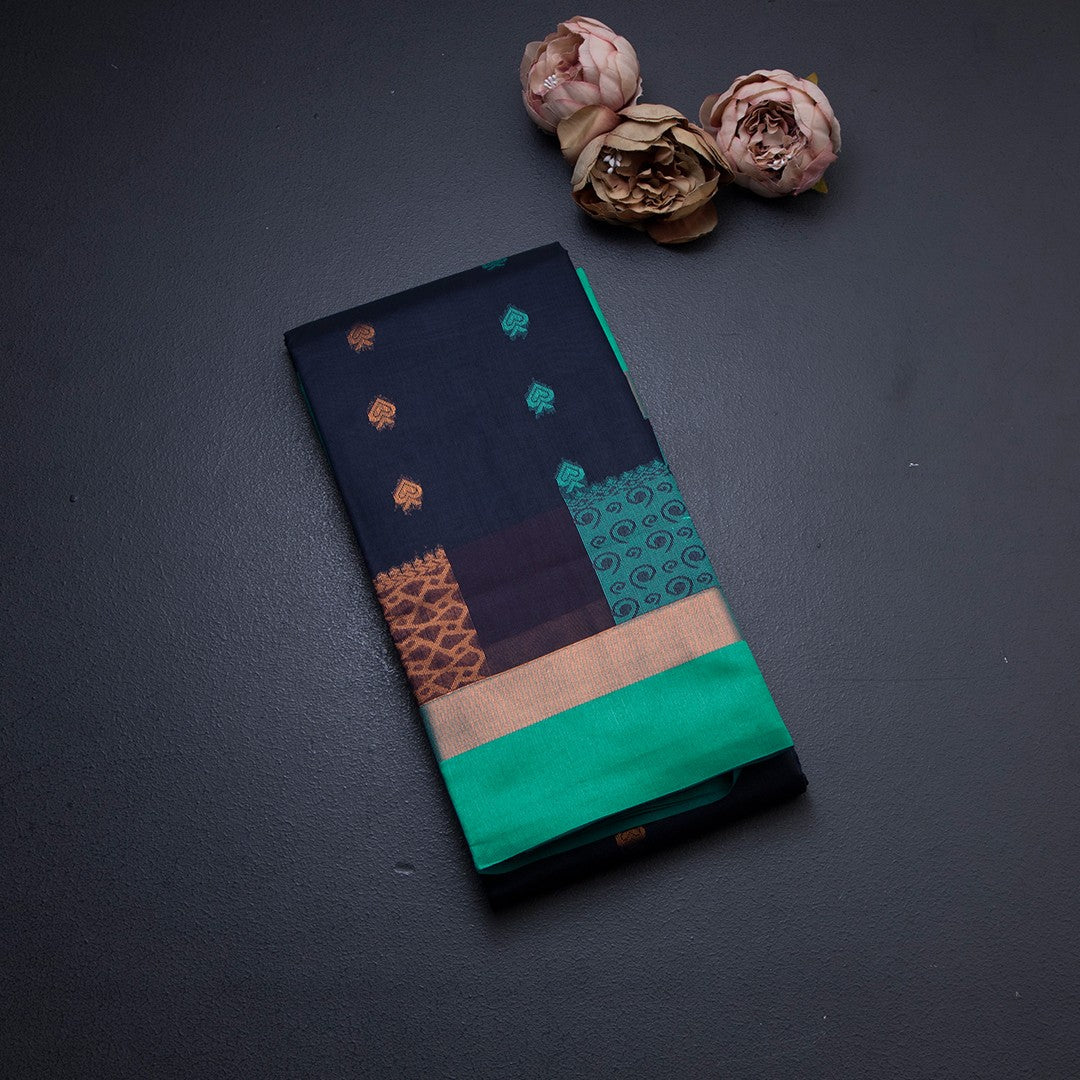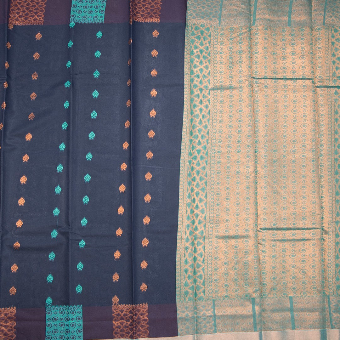 Silk Cotton Navy Blue Zari Worked Saree 02